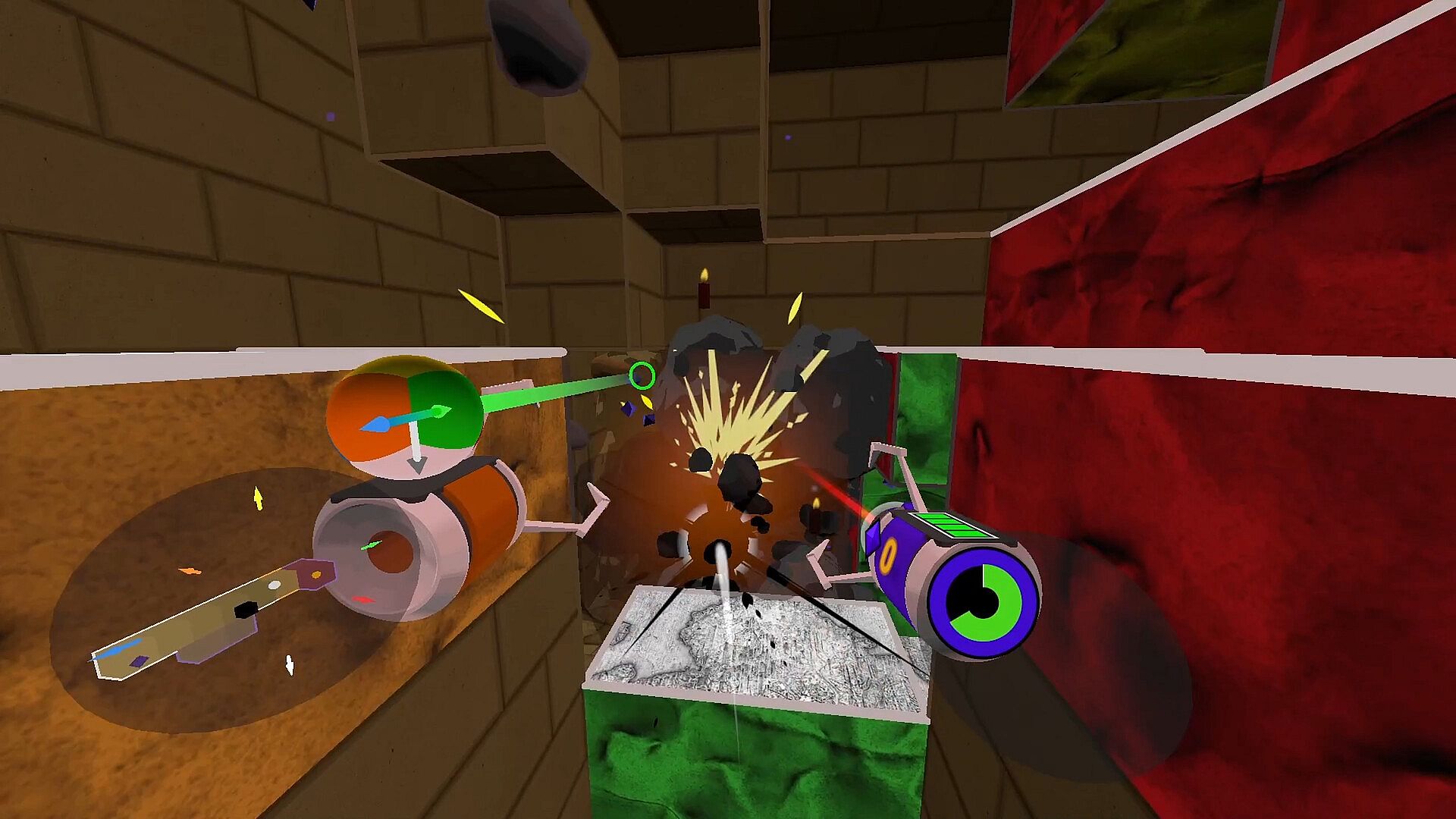 Chase a laser pointer into an ancient black hole engine as Gumbot the cat in this physics-driven indie action adventure. Master fluid movement by leaping across ledges, shifting gravity, and using rocket parkour to navigate from orbital factories to scorched canyons. Tackle voxel cave obstacle courses packed with traps, enemies, and branching paths, while wielding tools like grappling hooks, shotguns, katanas, jackhammers, and teleporters. Battle beasts through kinetic physics clashes and collect life bounties to fuel upgrades. Work with Jacquard at hidden shops to expand powers, then lucid dream between levels for dreamlike mechanic shifts that bend reality. Players who crave precise control, sensory haptics, and exploratory flow states will thrive in these destructible biomes.
