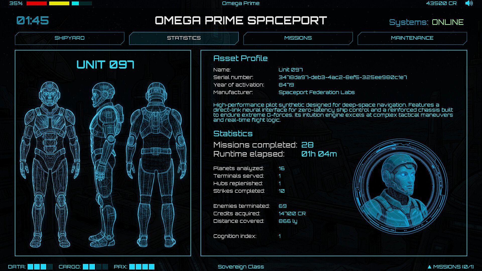 Step into the metallic shoes of a specialized android pilot serving the Spaceport Federation. In this meditative space odyssey, the destination is important, but the journey is everything.