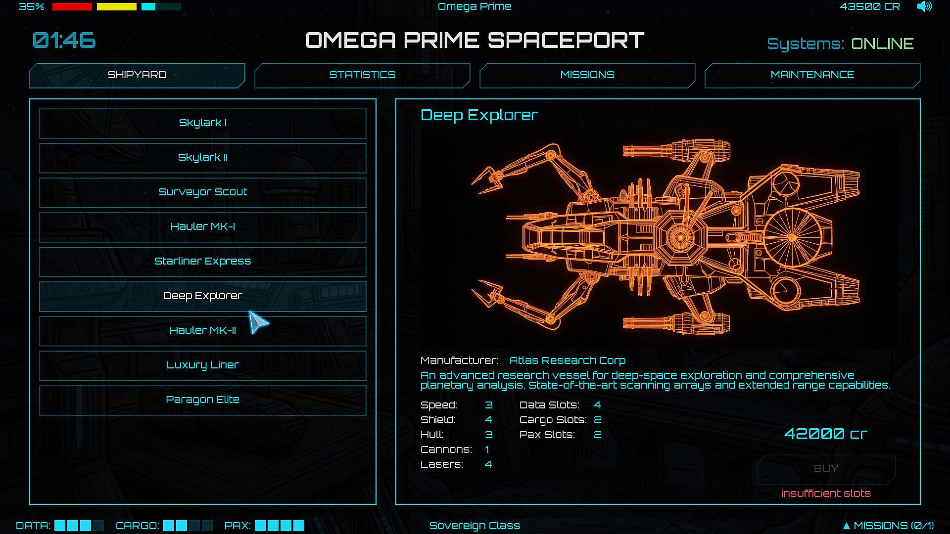 Every successful mission puts credits in your pocket. As you build your reputation with the Spaceport Federation, you’ll move from humble scout ships to massive, powerful spacecraft.