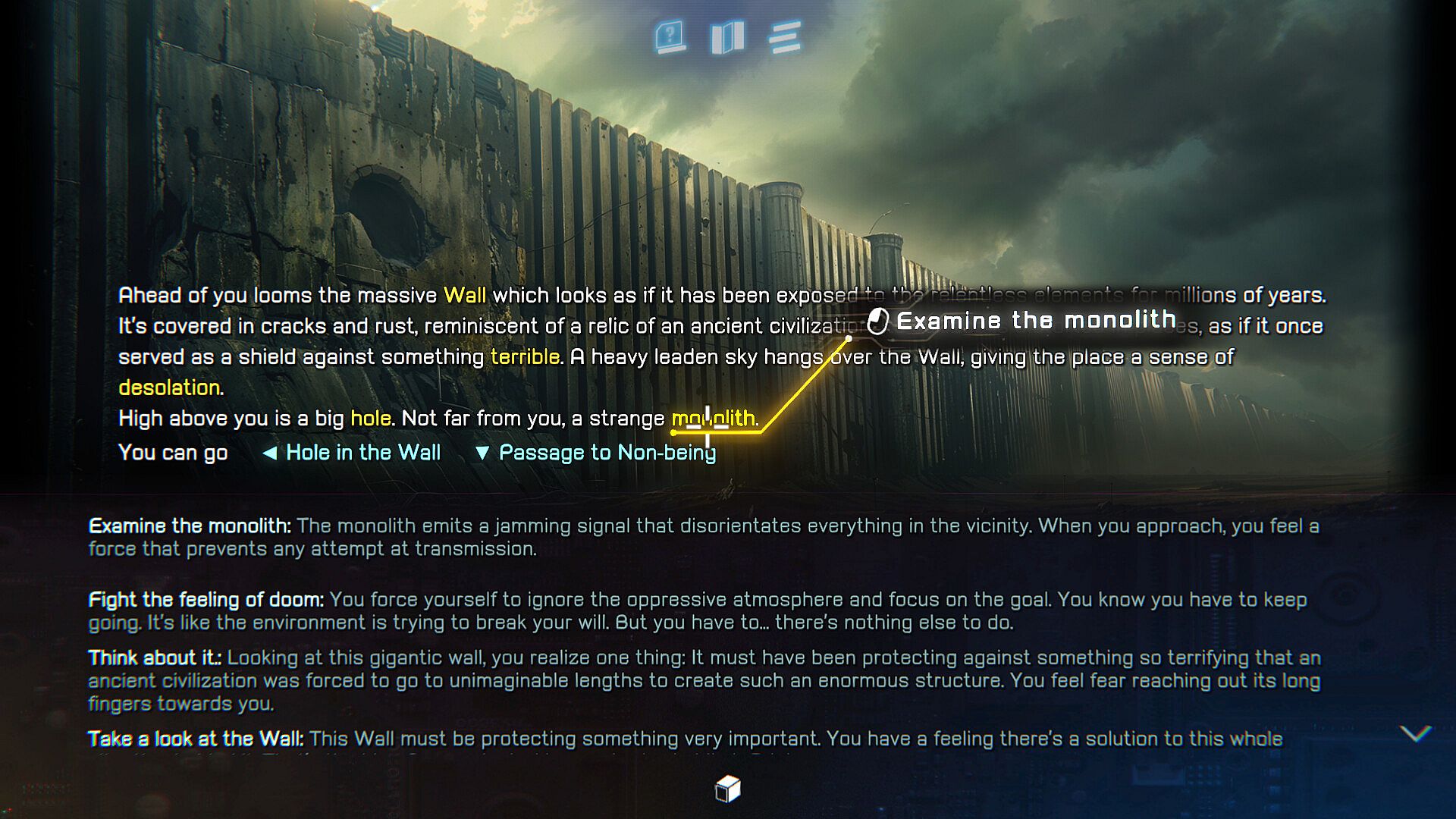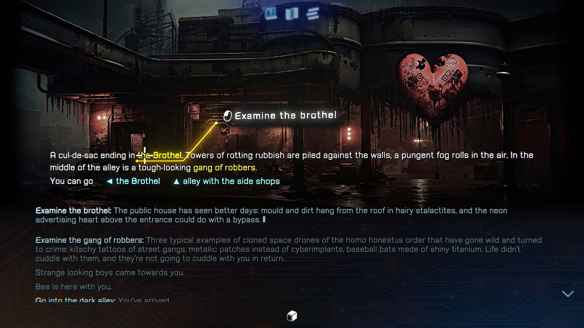 Interactive fiction, visual novel adventure with point & click controls and AI-assisted illustrations