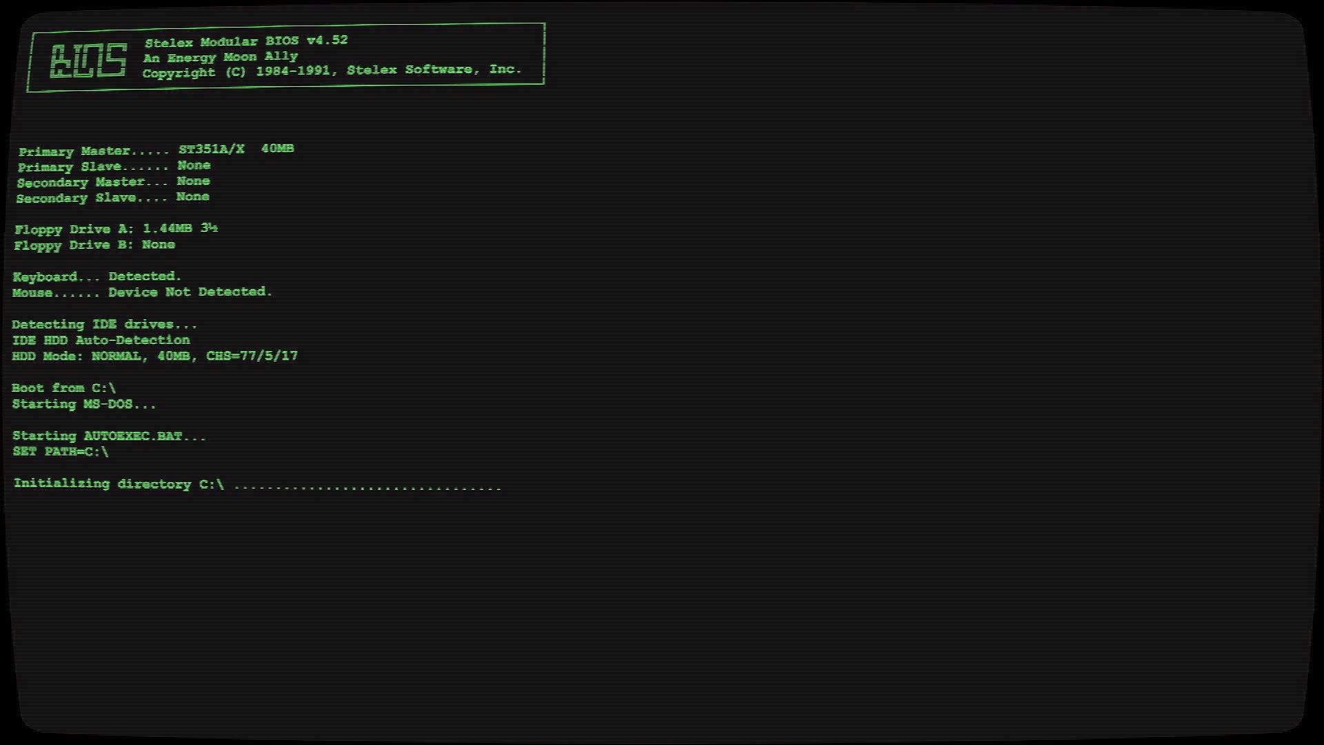 While exploring an abandoned industrial district you stumble across a mysterious, faceless building. Inside, among rusty shelving and forgotten folders, you find a dusty office. In the middle of the room sits an old IBM PS/2 computer that is still on. Its phosphor‑green screen blinks like a heartbeat from another era and the analog modem emits a periodic beep – someone or something seems to be waiting for input.