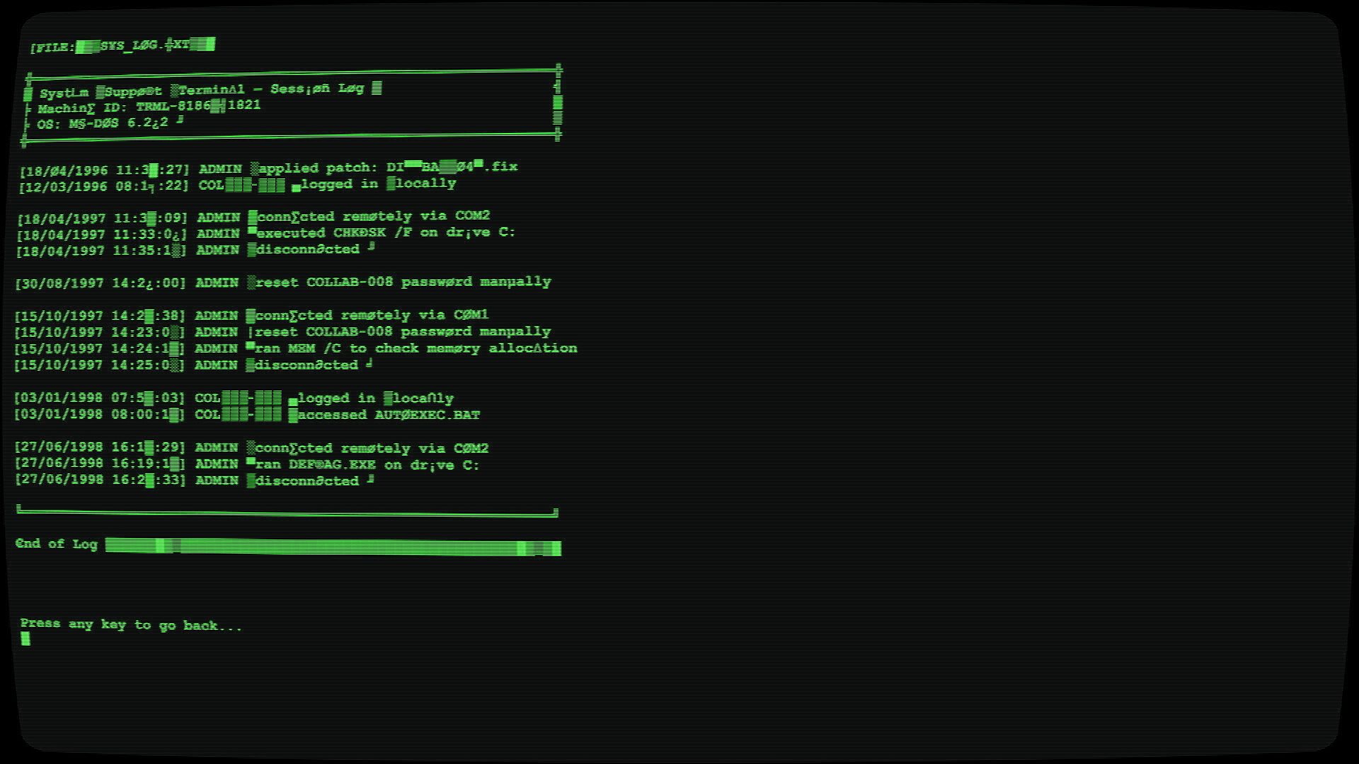 A█çe$s a f0rb¡dden d¡g█tal echo... nav¡gat€ c0rr█pt file$, dεc¡pher log$ fr0m a past that sh0uld’ve stayed bur¡ed, and unc█ver wh0 - or wh█t - is █till wa¡t█ng beh¡nd the pr0mpt of a█ <Unk█nown_T€rmi█al>!