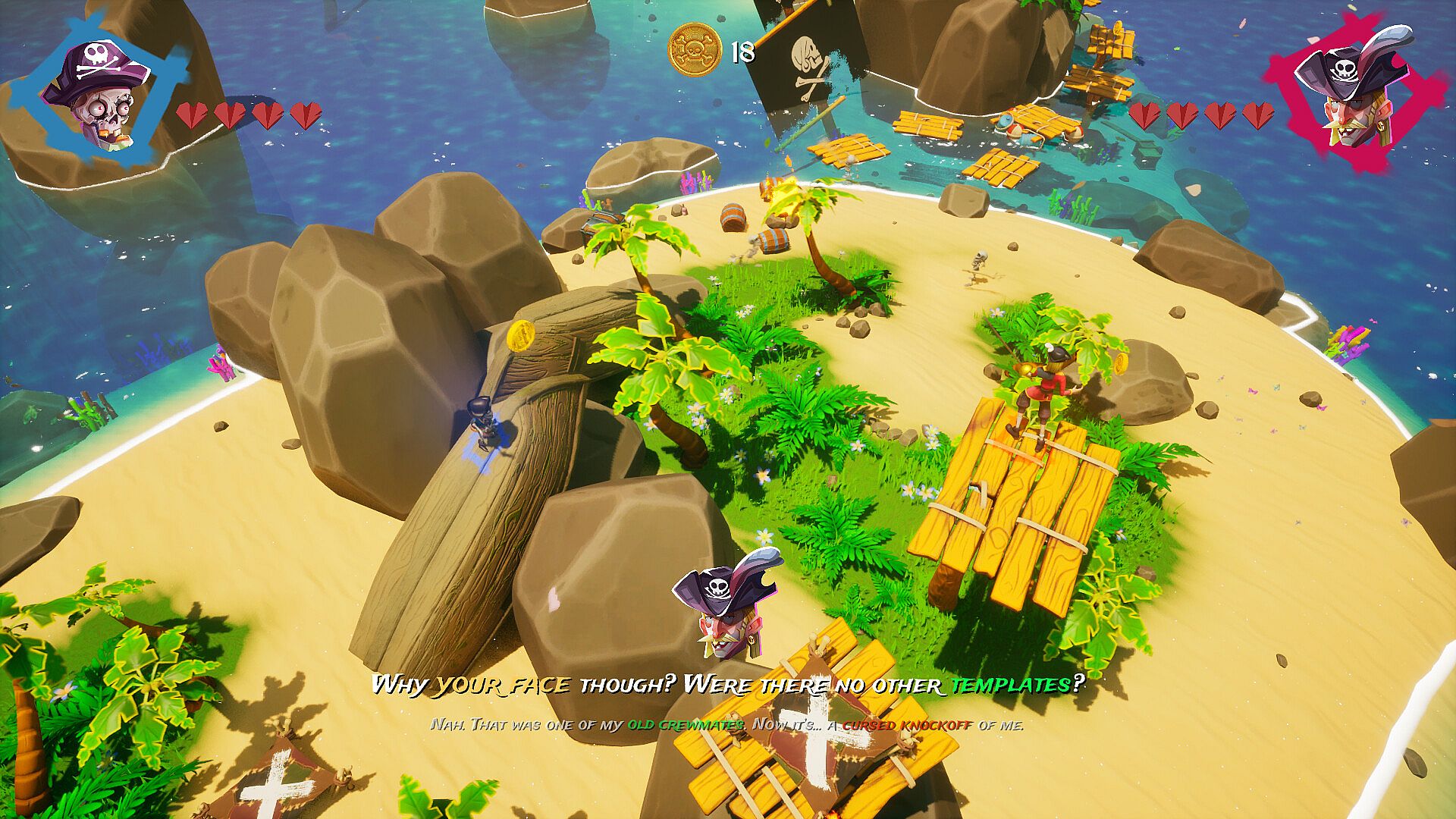 Experience a story full of twists and turns, where the clashing personalities of Jack and Ed shape both dialogue and gameplay choices. Between friendship, tension, and revelations, the narrative takes you on a breathless escape from a cursed island. Get ready for an immersive story full of humor, mystery… and black powder!