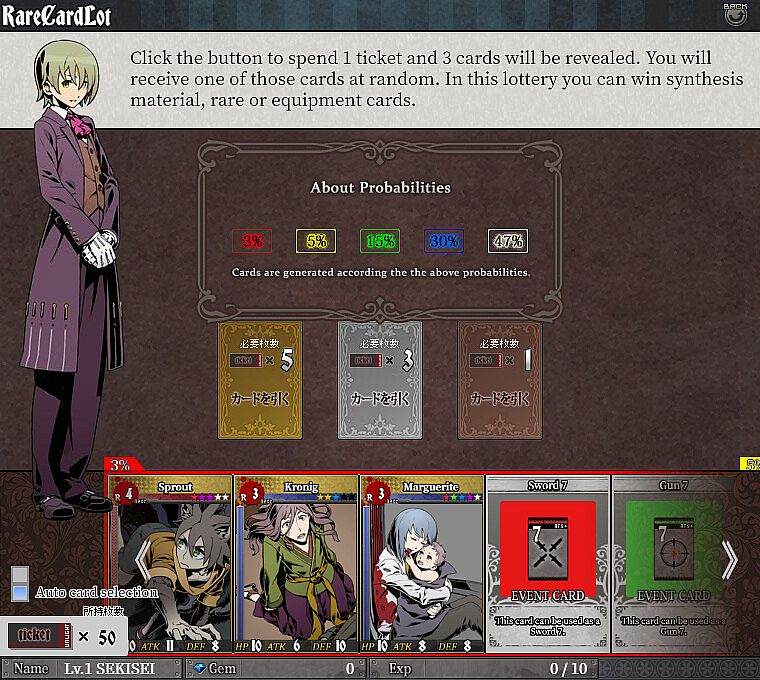 This is a story-centered competitive training card game. Players explore and conquer quest mode (single player) with character cards to obtain treasure chests, train and customize their character cards, and explore deck construction that suits their strategy, such as focusing on preemptive action, attack, defense, or overall balance. Not only do trained character cards increase their HP and attack/defense stats, but they also learn special moves unique to each character, which, when conditions are right, can deal significant damage and battle effects to enemies.