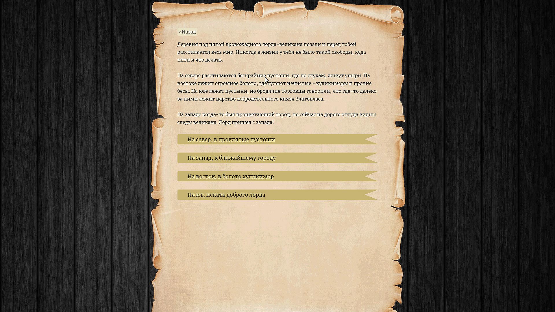 The game has 550 thousand characters and 80 thousand words on 1000 pages. Sometimes the pages follow one after another, like in regular books. And sometimes turn into hubs, where you can ask caravaners about the world, listen to strange tales, learn secrets about neighboring locations or hints at solutions, and of course - to make a choice: go with this caravan or wait for a completely different?