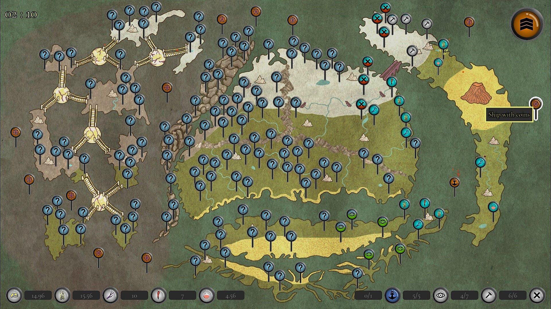 You can buy more pins in the shop to help you gather and scout more. You can also sell resources to help you make more money so that you can pass to the next round.