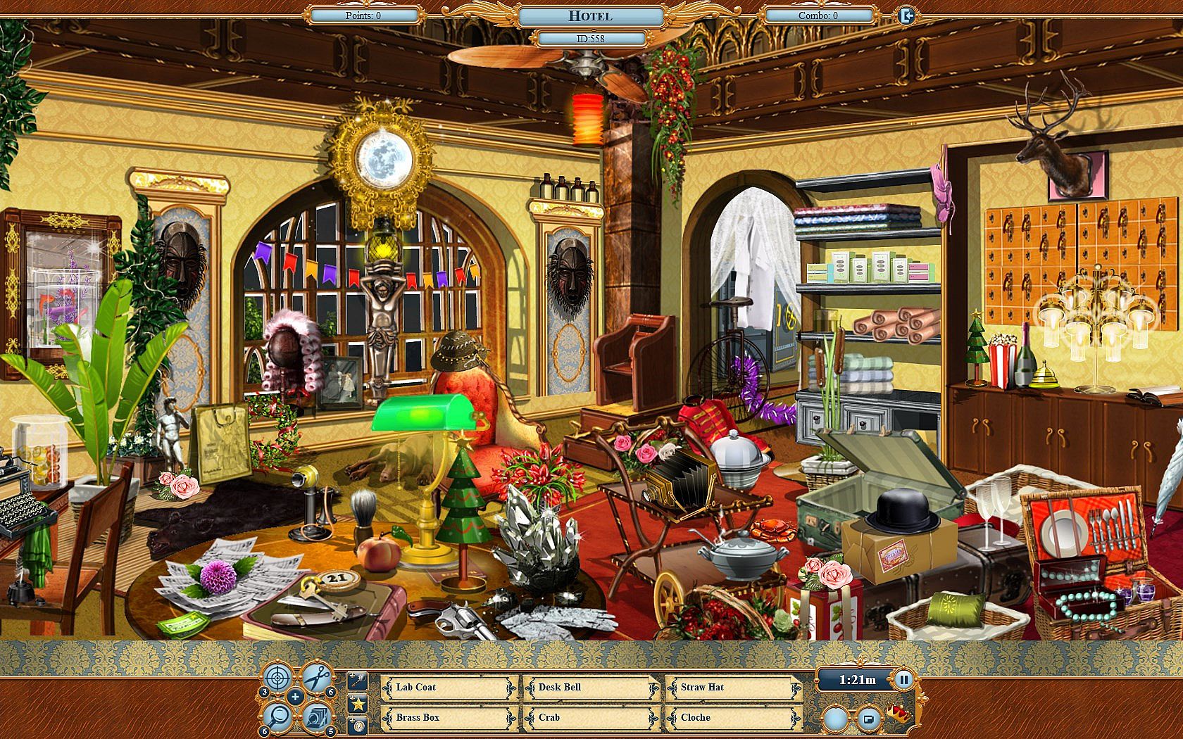 Solve hidden object puzzles that get more and more tricky. Find the required items within the 60-second time limit and be as accurate as you can when clicking – because if you miss or go over the time limit, you'll lose out on valuable points. Discover and explore the fascinating world of hidden object games!
