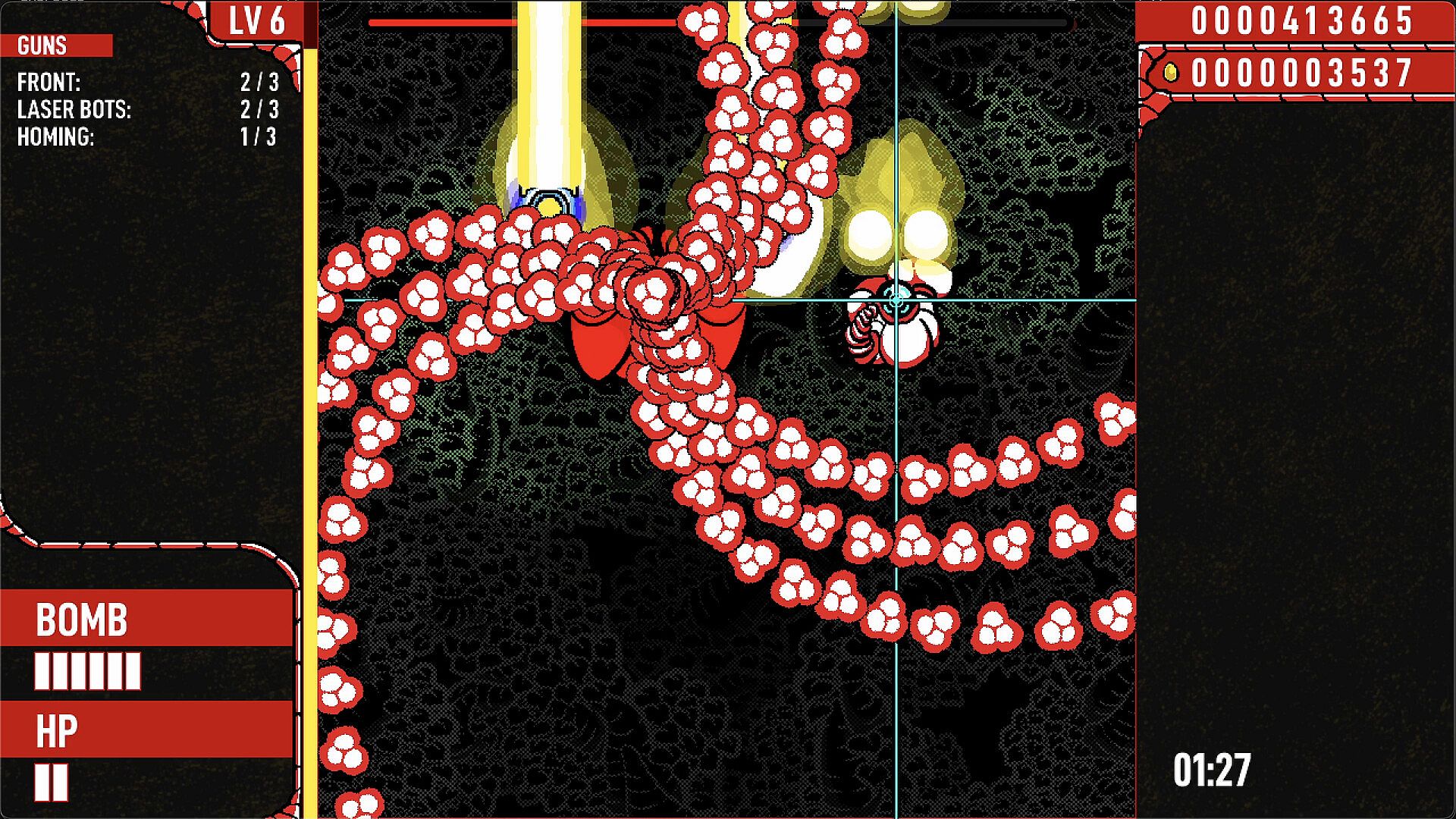 'USG' Is a captivating vertical shoot 'em up featuring hand-drawn animations and a unique art style. Customise your run with multiple weapon upgrades