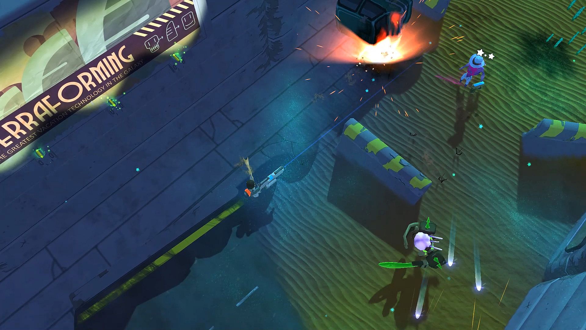 Utopia 9 – A Volatile Vacation is a rogue-like 3D twin stick shooter. The game is set in a tragicomic future with a retro sci-fi feel. You play as the most recent guest to arrive on the vacation resort Utopia 9 but nothing is as promised! Upon arrival, you must make your way through hordes of space mutants determined to take you out and snatch your loot. The nemesis system adds unique enemies and invites the player to take revenge on the mutant murderers! Can you survive the mutant onslaught and sue the travel agency?