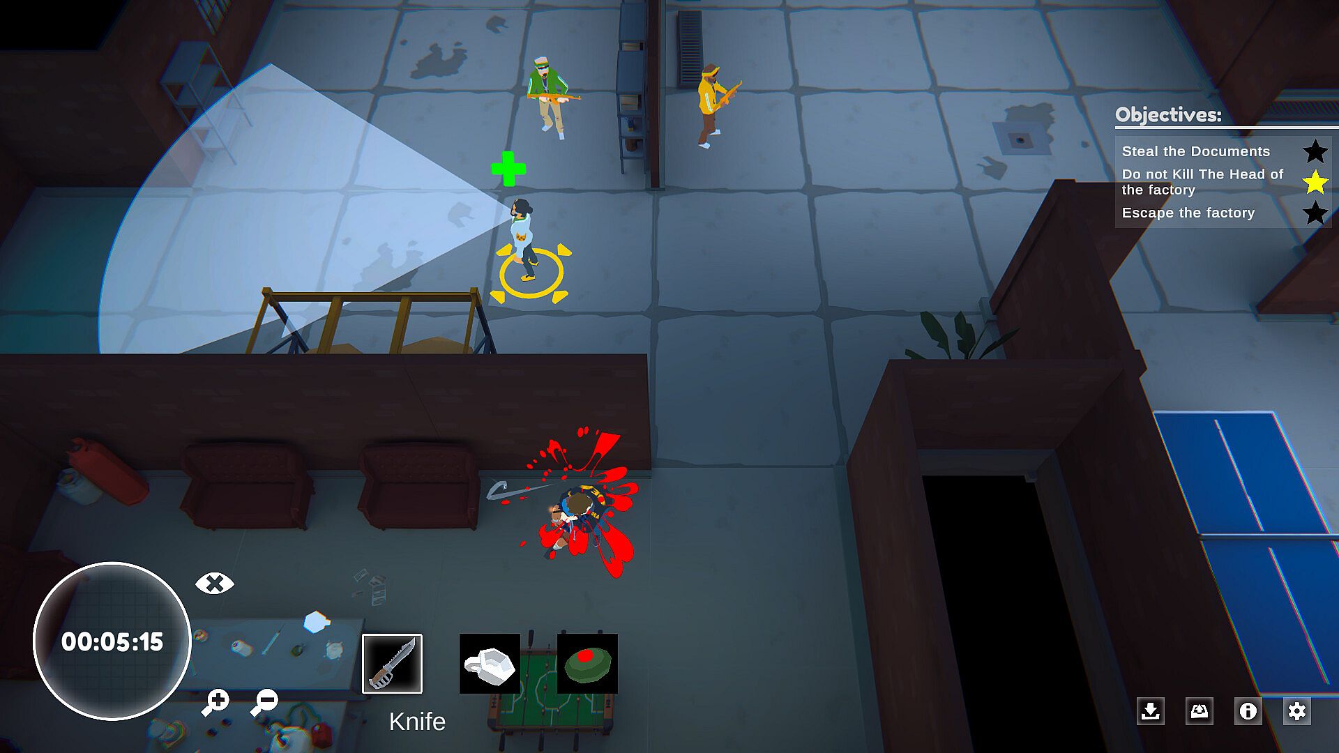 Utter Takedown is a gripping top-down tactical hard-core stealth game set in the 2000s. You play as a former hitman who has left the local mafia, only to have his family threatened as retaliation. Now, it's up to you to take down the mafia and save your loved ones. With a variety of interactive tools and weapons at your disposal - from knifes and tasers to cameras and toggles - you'll need to use all of your wits and strategic thinking to succeed.