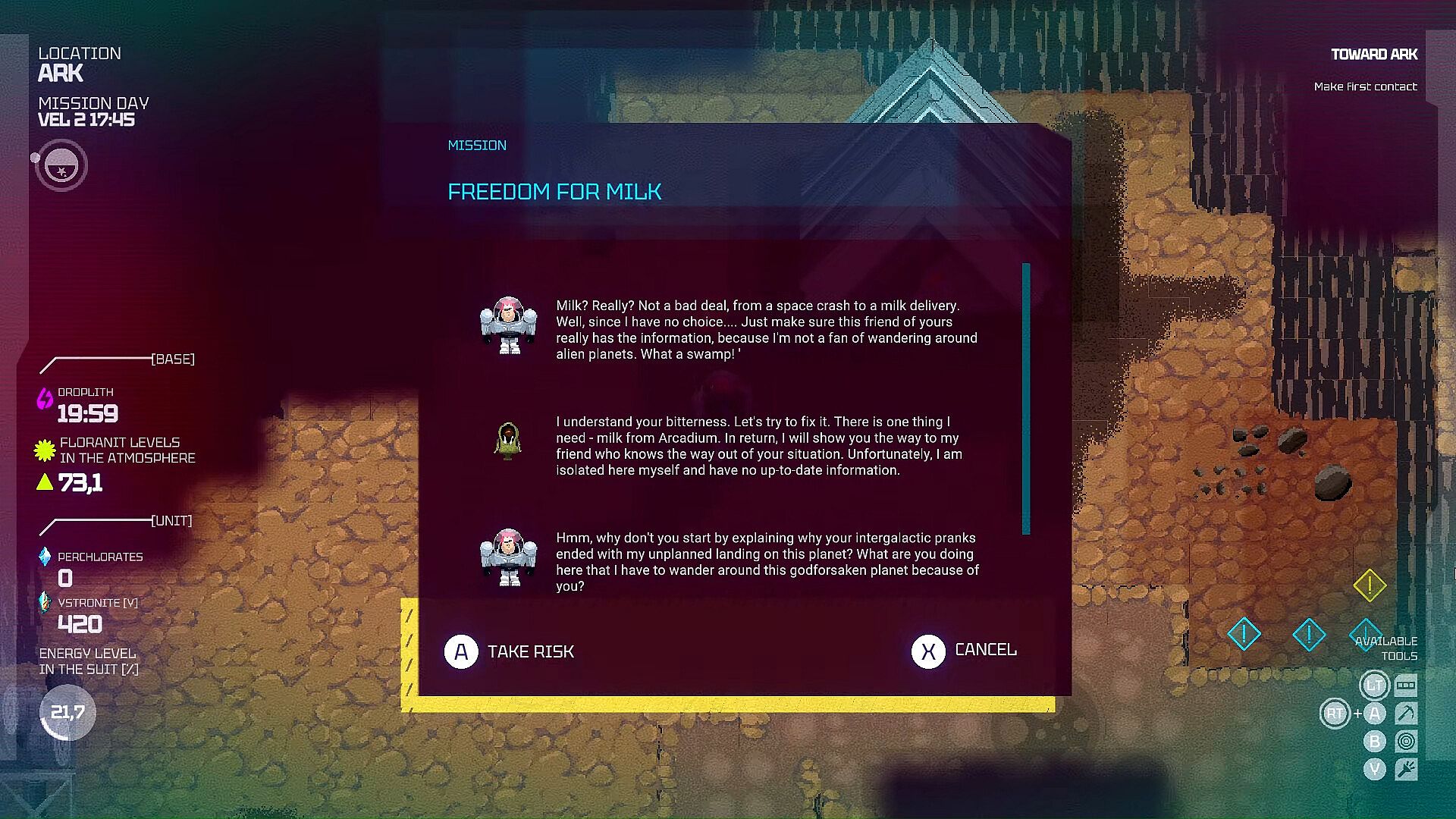 The game delivers an engrossing, hours-long experience with an episodic, series-style narrative - like good science fiction - packed with adventure, cosmic farming, base building, resource gathering, and hunts for alien lifeforms. It’s all wrapped in unique, hand-drawn 2D pixel art that sets a vivid, cosmic mood.