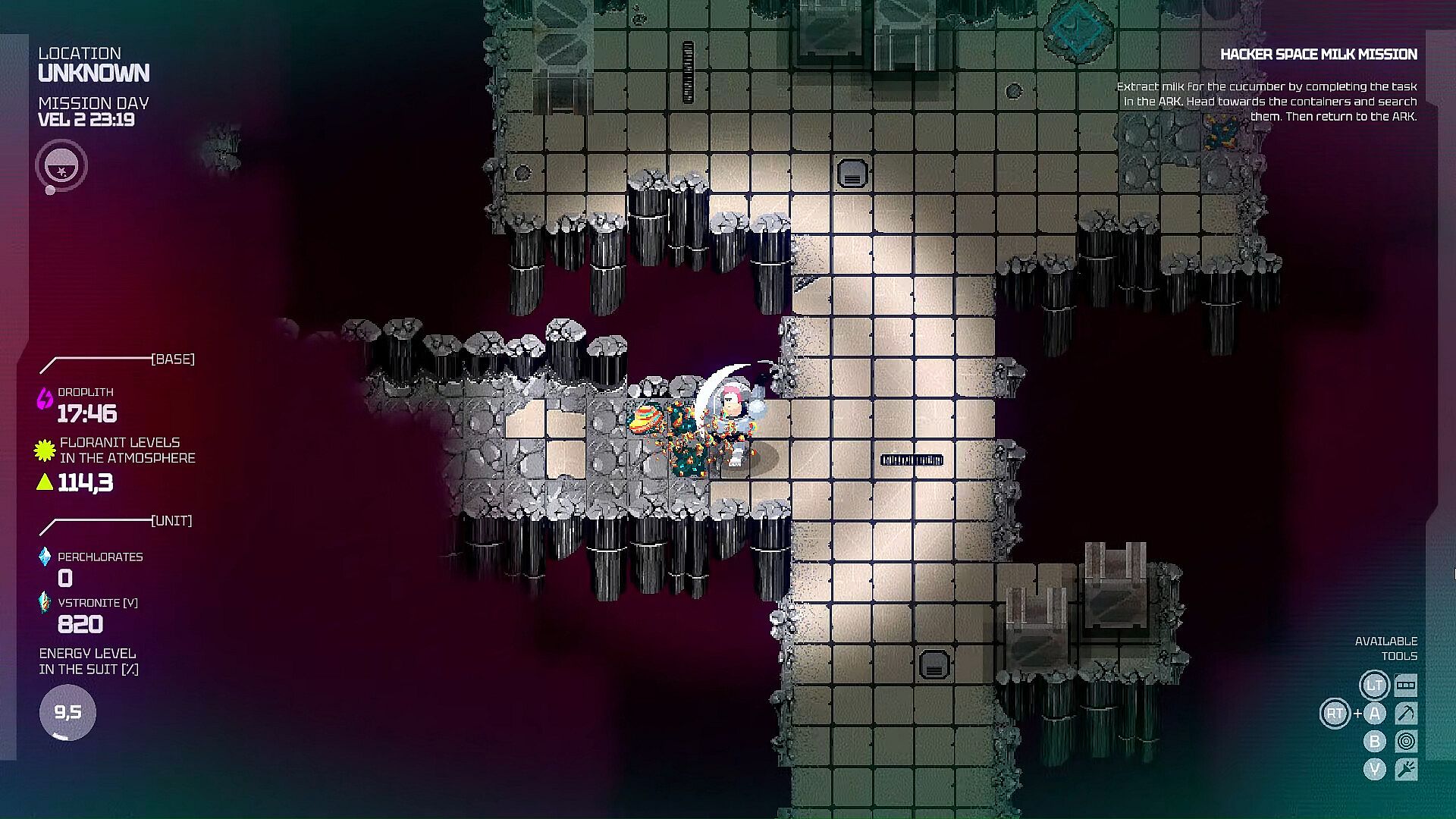 Expand your base, grow crops, harvest them, and build Floratrons to enrich the barren soil with minerals. Keep the lights on - if your base falls into darkness, the Shadows gain the upper hand. That’s only the beginning: explore V2, uncover its history, and peel back the planet’s secrets step by step.