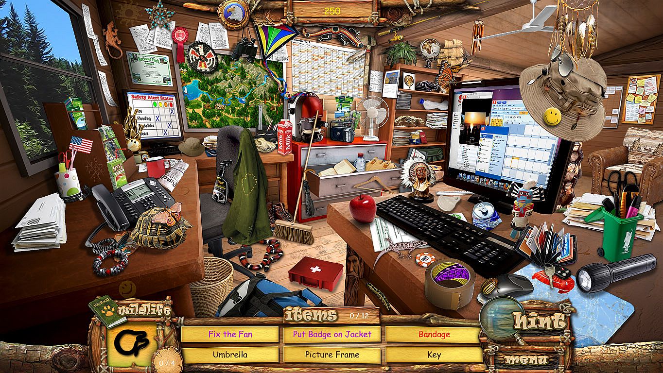 Enjoy this outstanding collection of Hidden Object Scenes and puzzles set in an idyllic national park. As well as finding Hidden Objects around the park you will need to perform your duties as a Park Ranger. Protect the environment by collecting all the bonus trash items to recycle and catalog all the wildlife throughout the park in your Wildlife Journal.