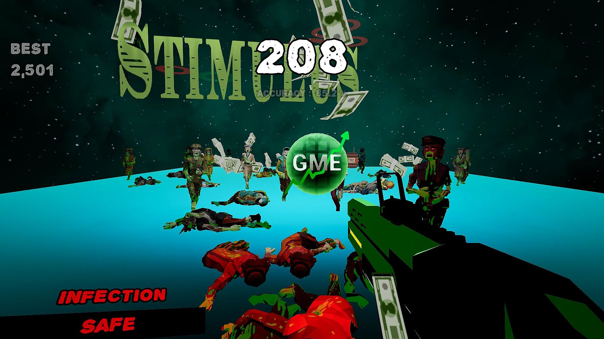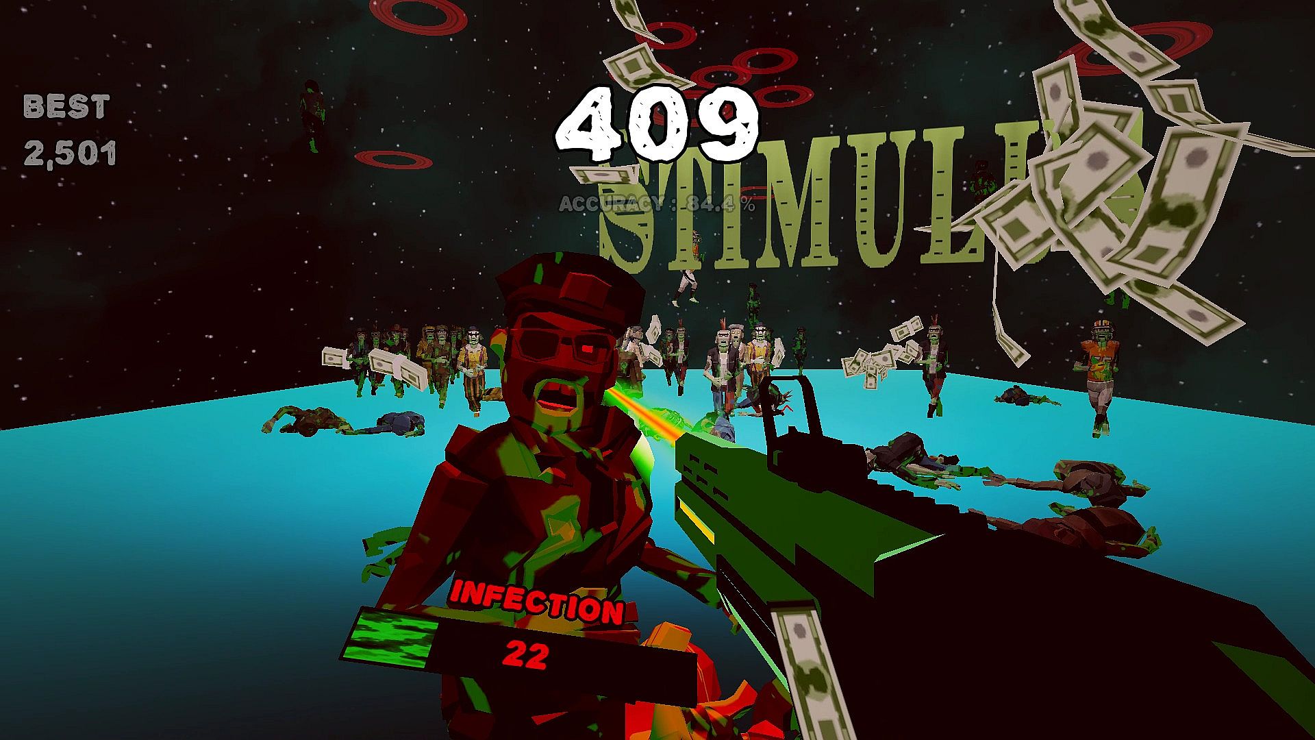Collect stimulus money to slow down the infected.