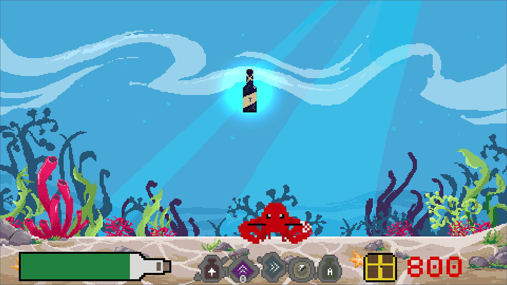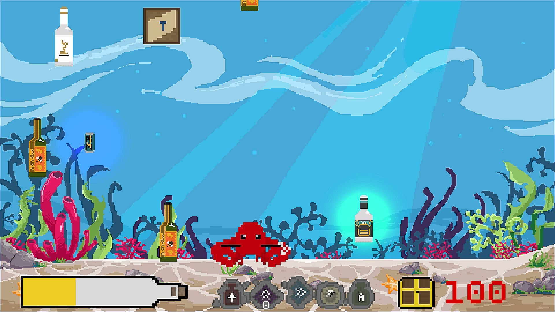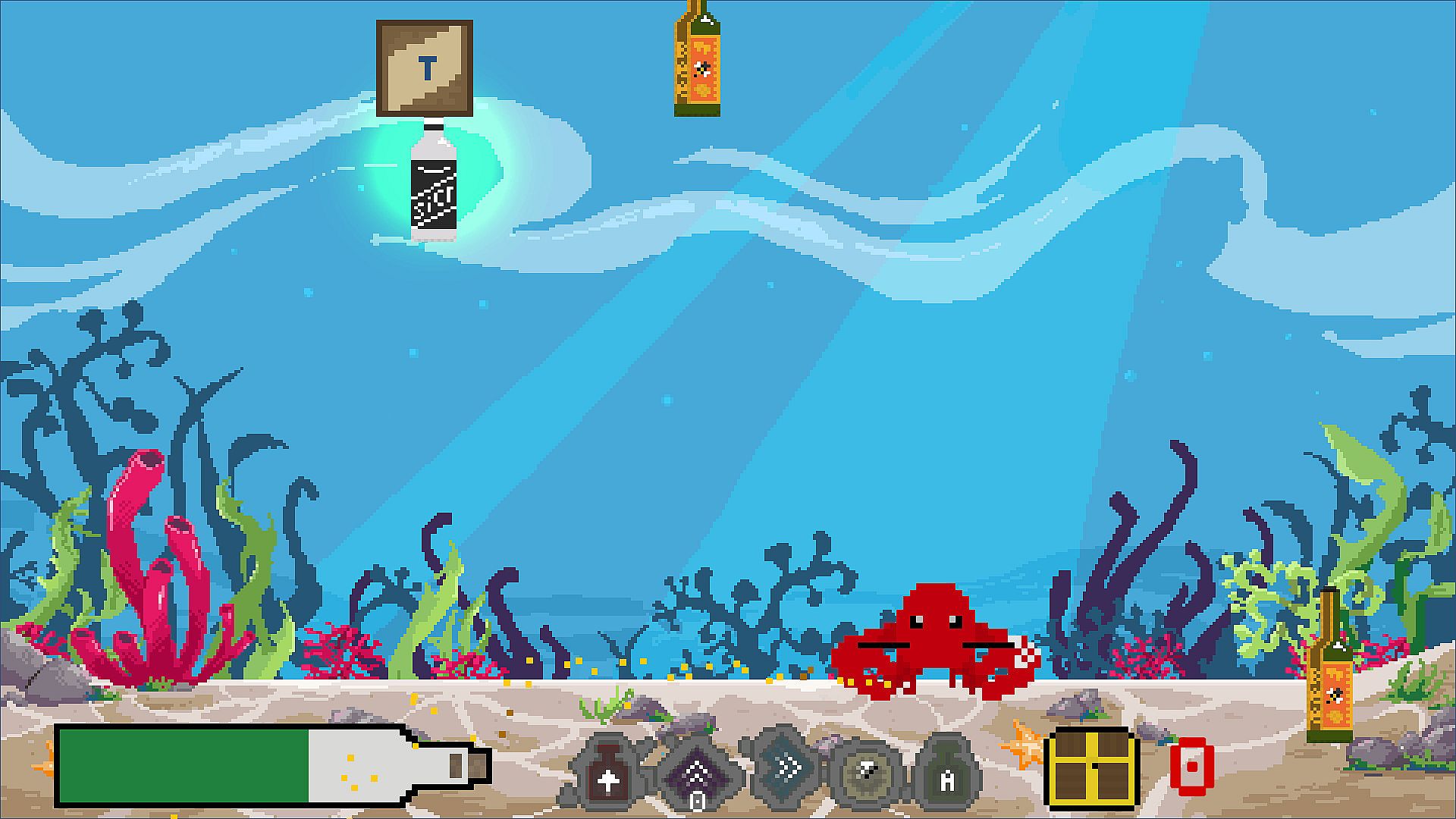 You are playing as a lobster (whose name is Valera) and you can get scores and bonuses for catching the bottles.