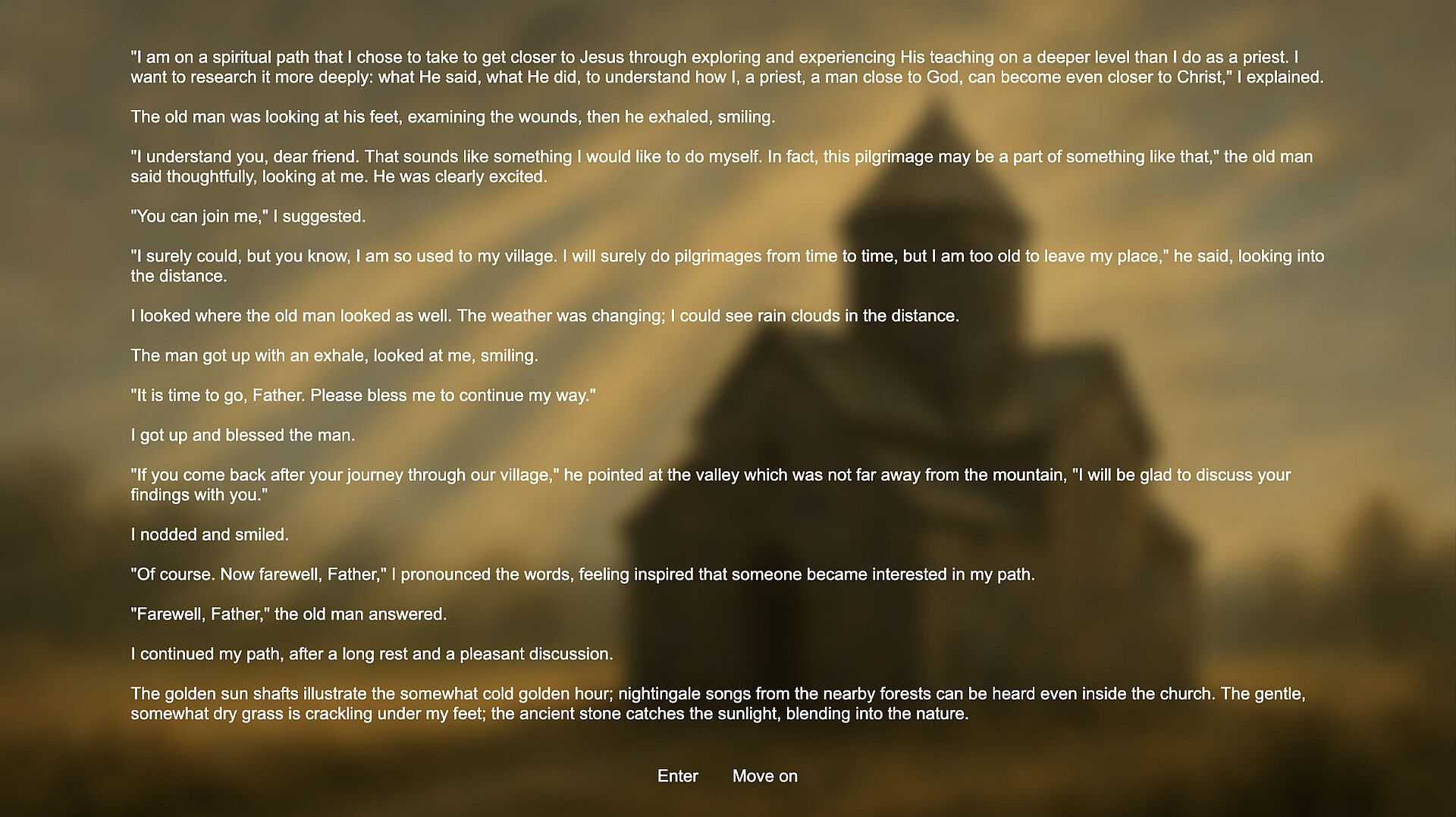 Vanakan is a text based adventure. Its gameplay features viewing beautiful illustrations of locations which immerse you in the atmosphere, text descriptions of the events and choices in each location that affect the following story and gameplay. The game features several endings.