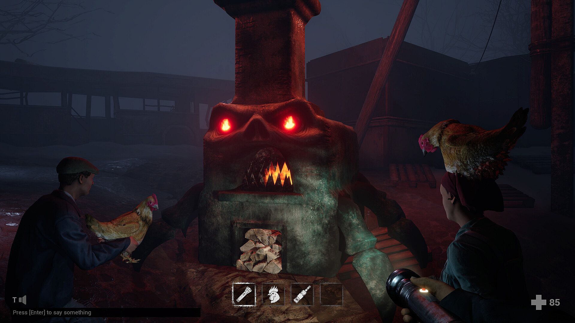 Immerse yourself in the atmosphere of the post-Soviet hinterlands and Russian fairy tales: brew a potion in Baba Yaga's hut, run away from the Kolobok and catch chickens to feed them to a living stove!
