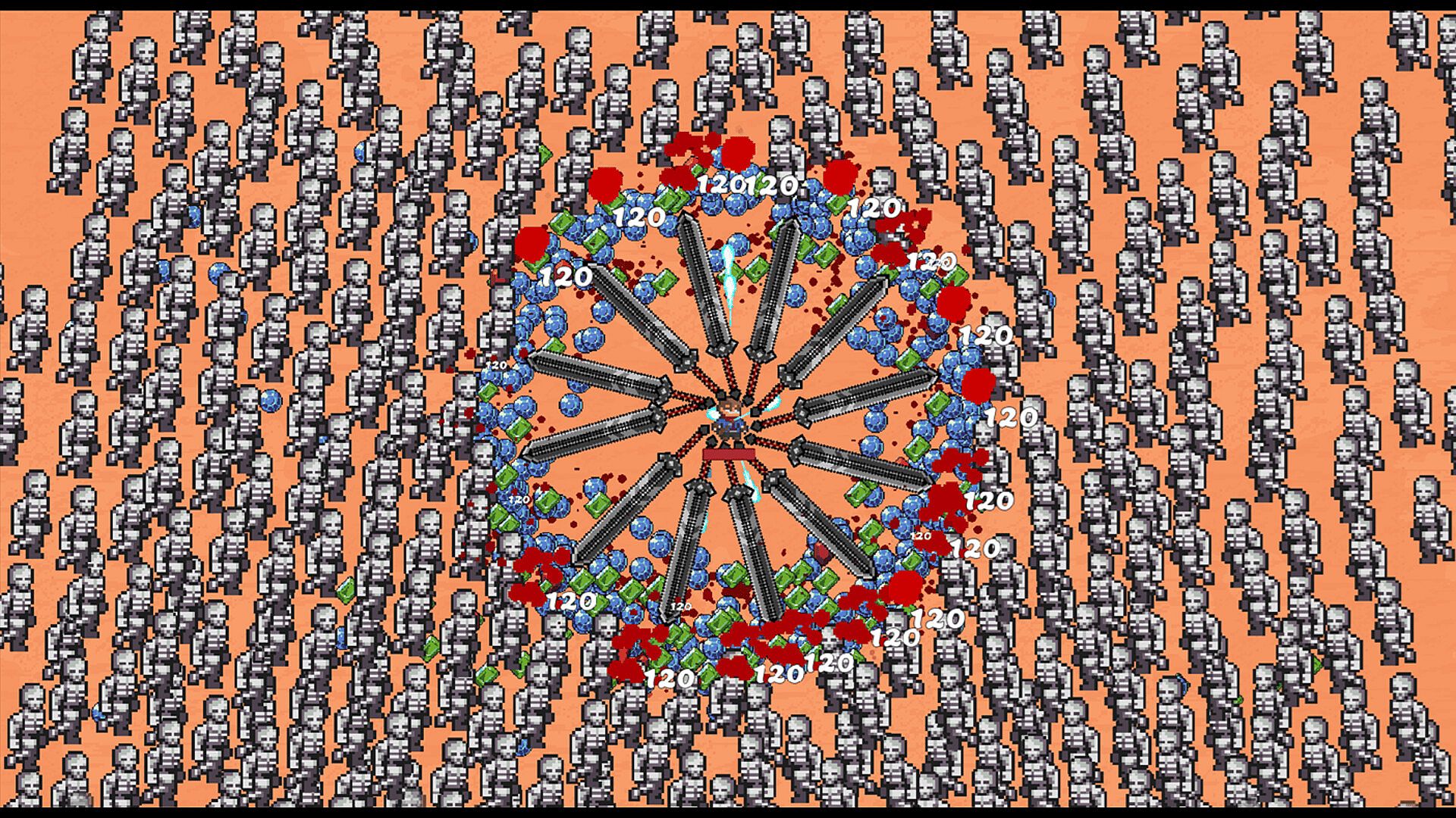 Dash through bullet-hell encounters in tight 20-minute runs. Face hordes of varied enemies and challenging bosses, each requiring different tactical approaches. Choose from dozens of weapons that enable completely different playstyles - from close-quarters brawlers to long-range specialists.
