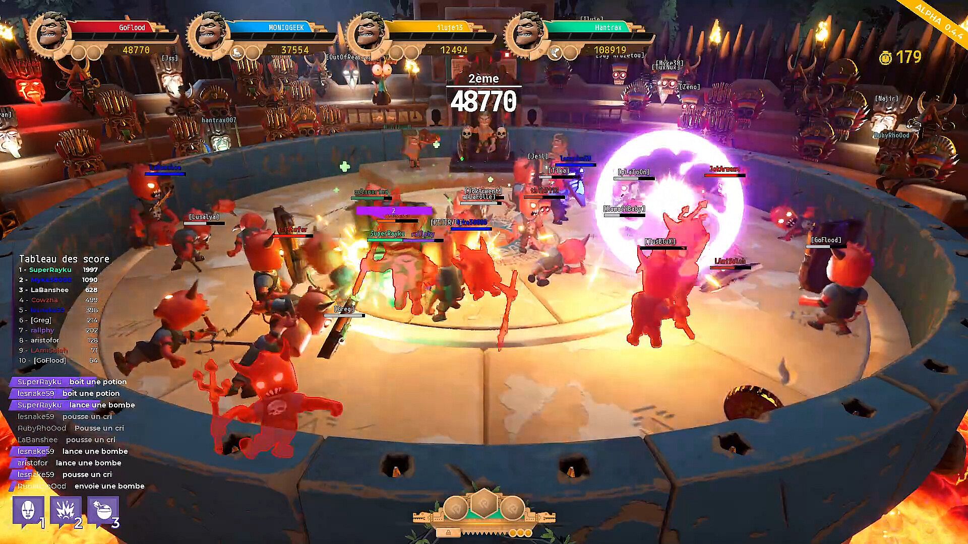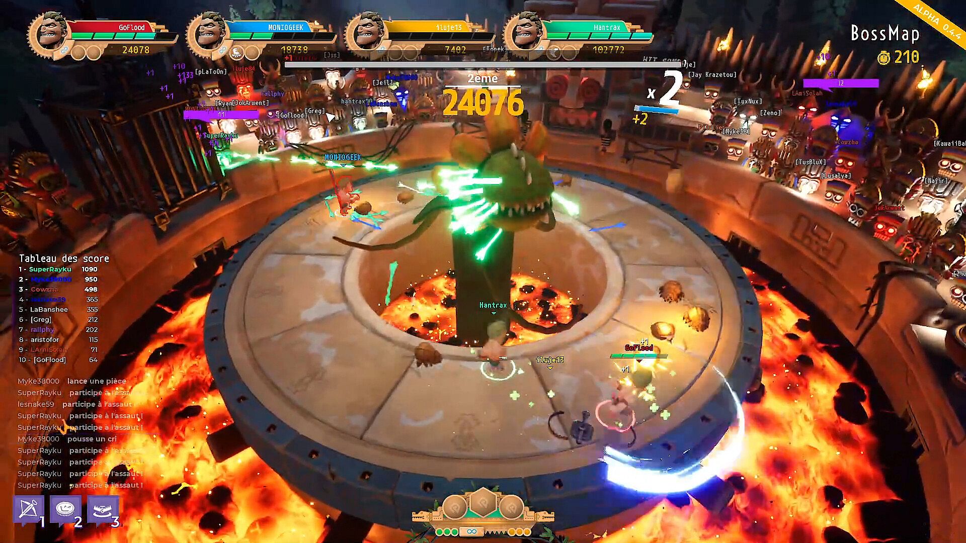 Don't get to close to the edge of the arena or you may fall and get roasted by lava underneath. But the Elders are lenient and will allow you come back to life again and again to try and gather as many points as possible and win the champions' ranking.