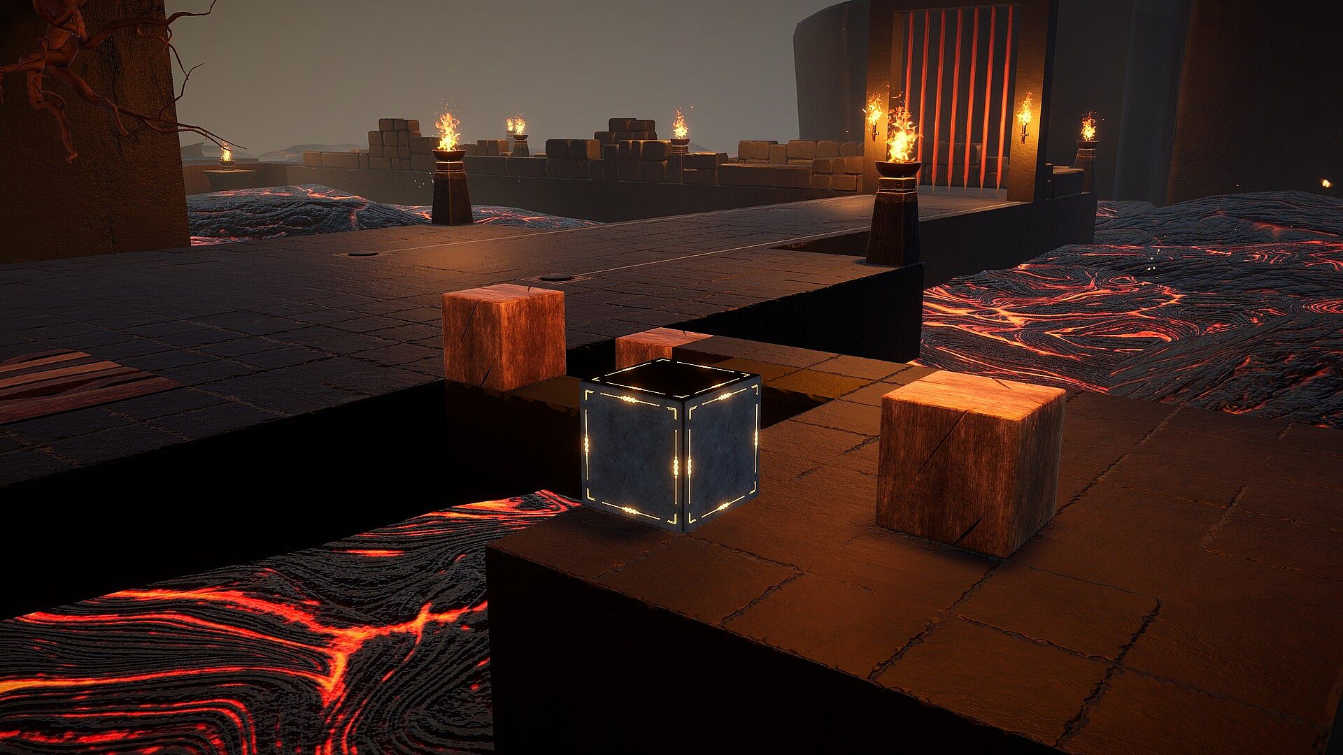 From pushing blocks to redirecting energy, every puzzle is built around your cube form and elemental powers