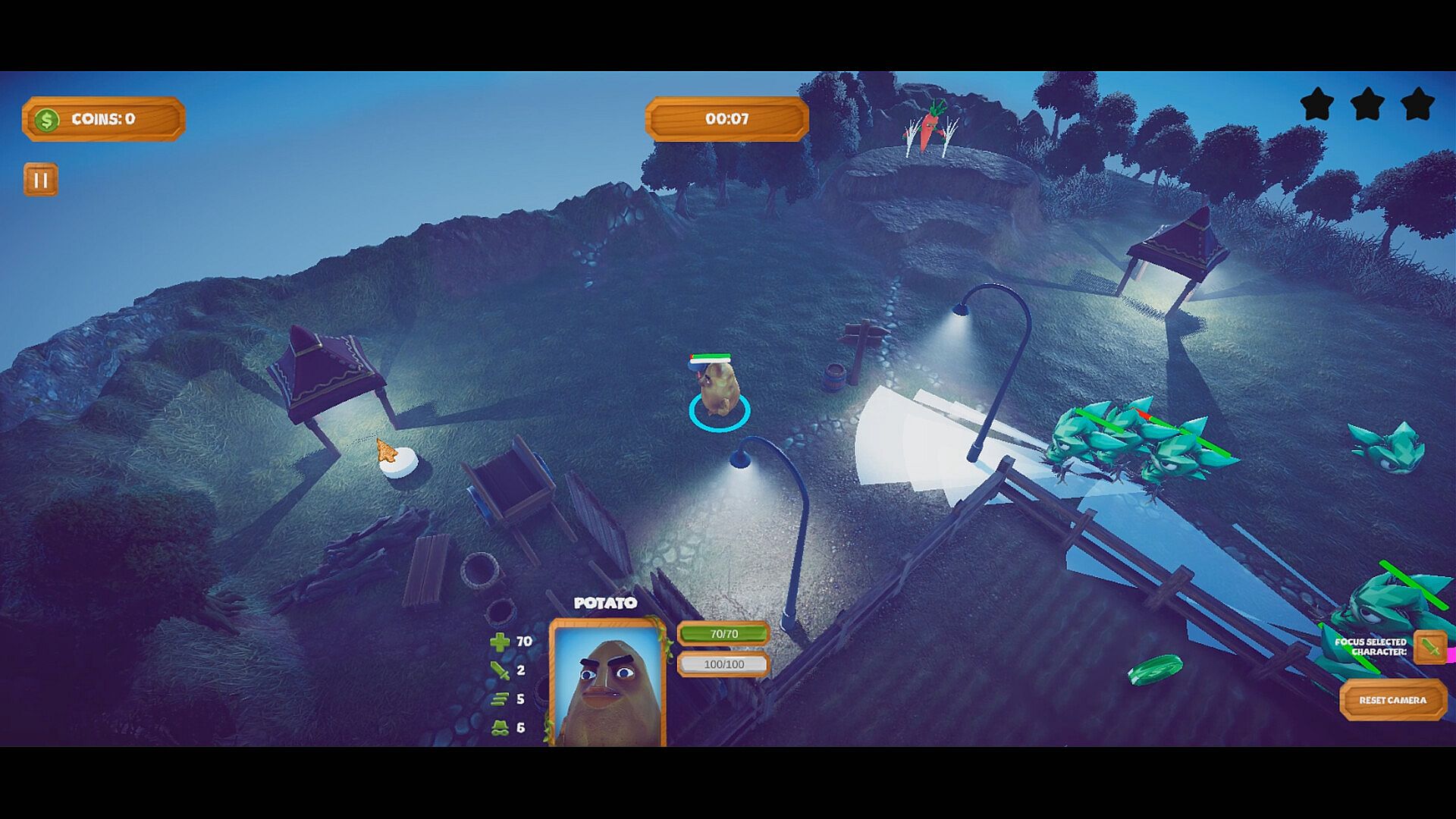 Veg Uprising is a real-time tactical stealth strategy game where you lead a squad of unstable vegetables through enemy-infested garden battlefields.