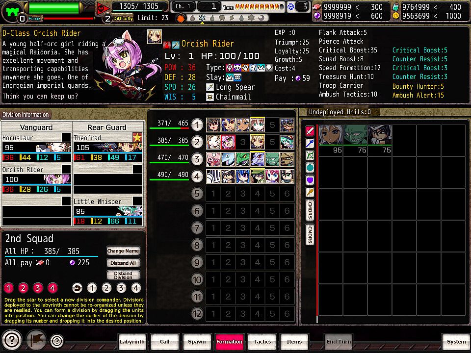 With three divisions of six units each, you enter battle...with all 18 units! Decimate the enemies trapped in your labyrinth with the full force of three divisions!