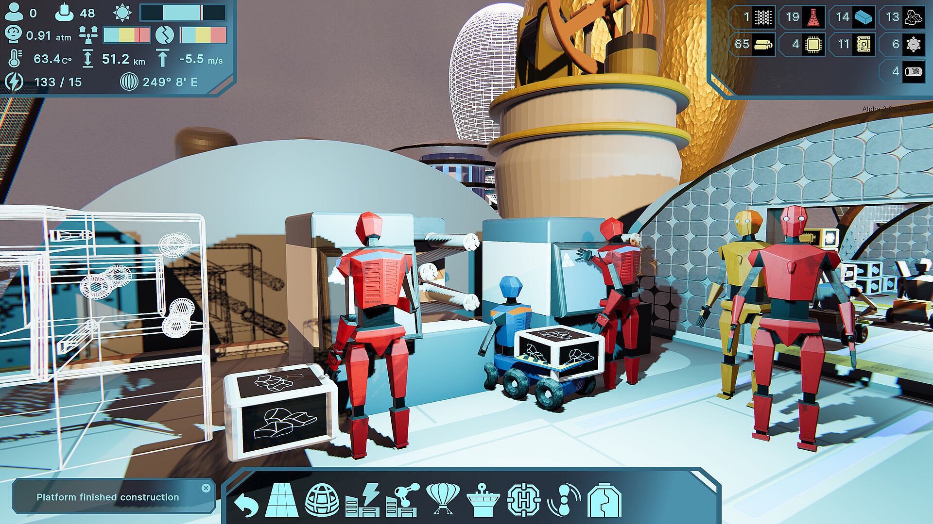In Venusville: Prologue, take command of an autonomous corporate mission to construct and stabilize a floating platform high in Venus’s polar atmosphere. With no humans on board, your robotic workforce must establish infrastructure, maintain balance, and power the systems to needed to test the future colony technology.