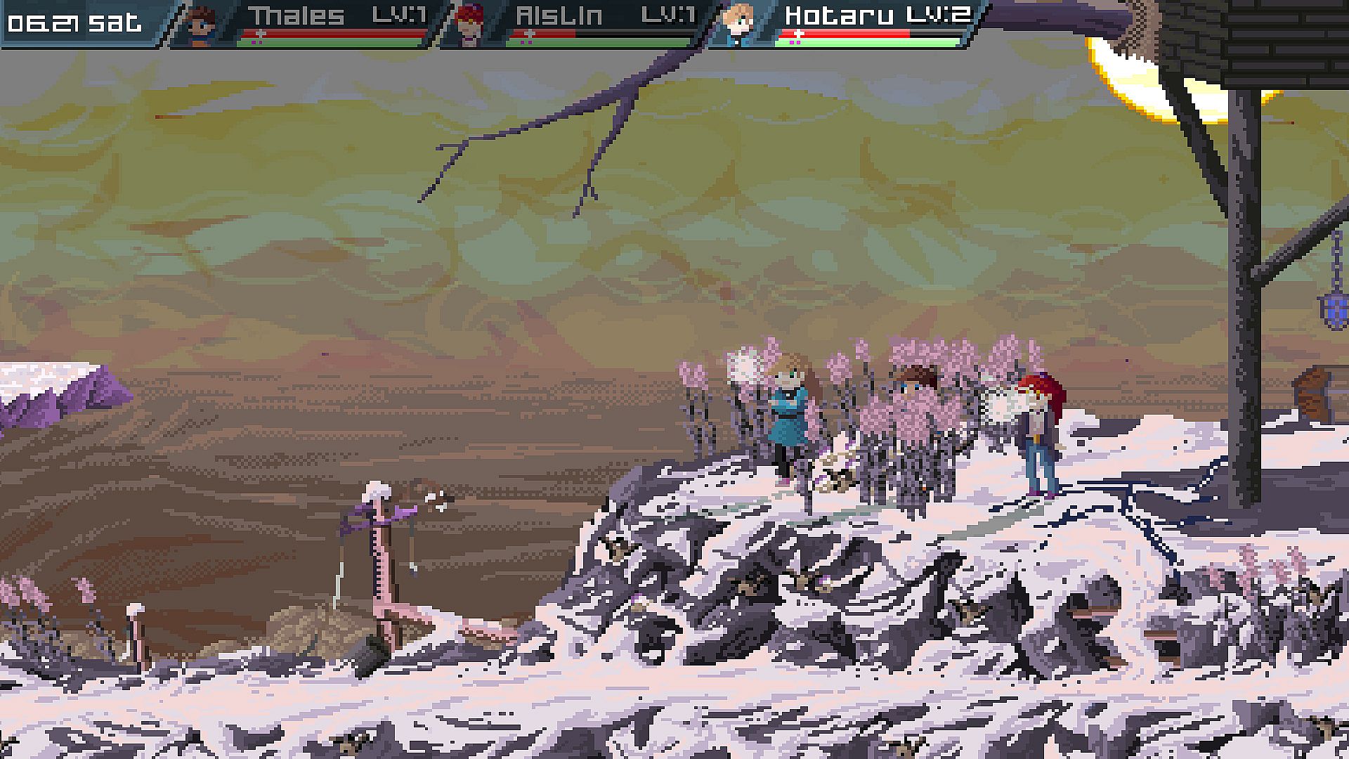 Talk and interact with characters through an RPG-styled battle. Where you can choose non-verbal, verbal, or books to create messages that you then ask people.