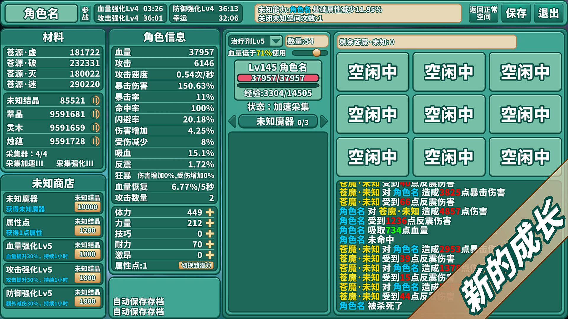 The extra material resources produced by placing it for a long time can also be exchanged for a permanent increase in attributes.