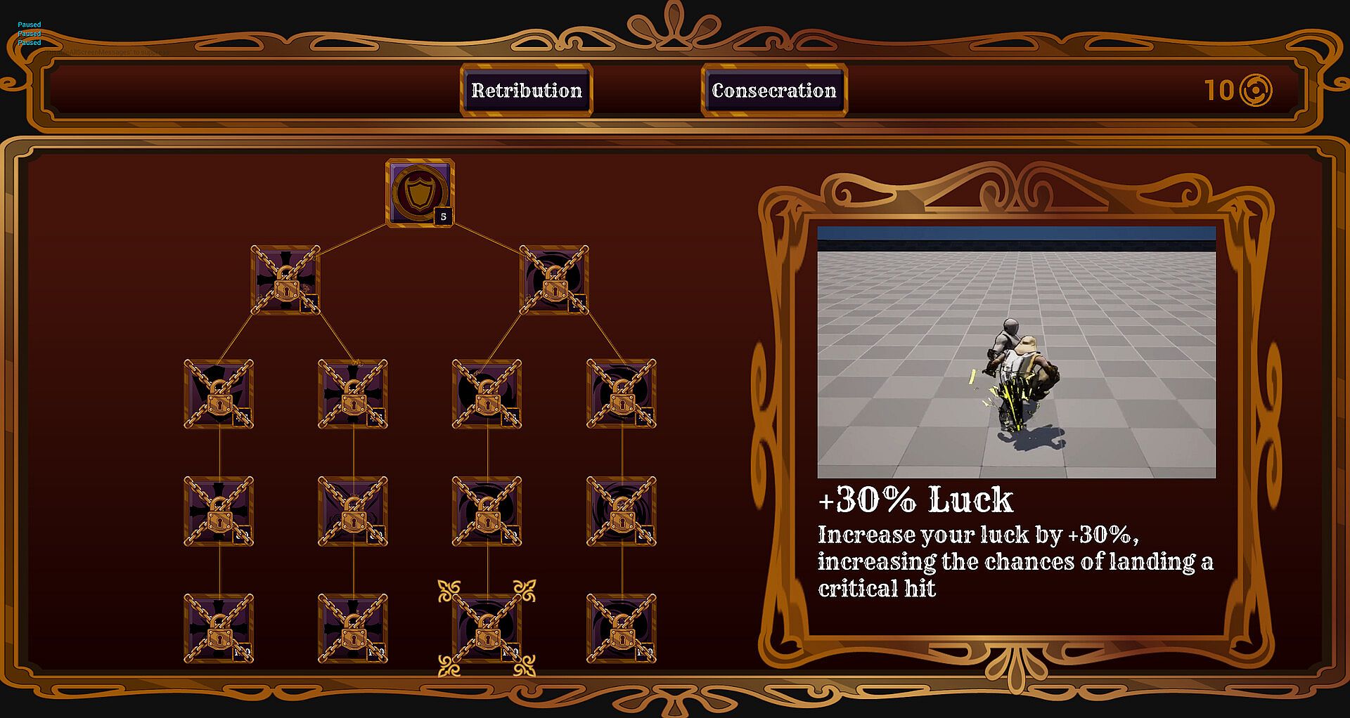 Stat Progression: Increase your Health, Attack, Luck, and Focus by equipping trinkets or by spending points in the skill tree between runs.