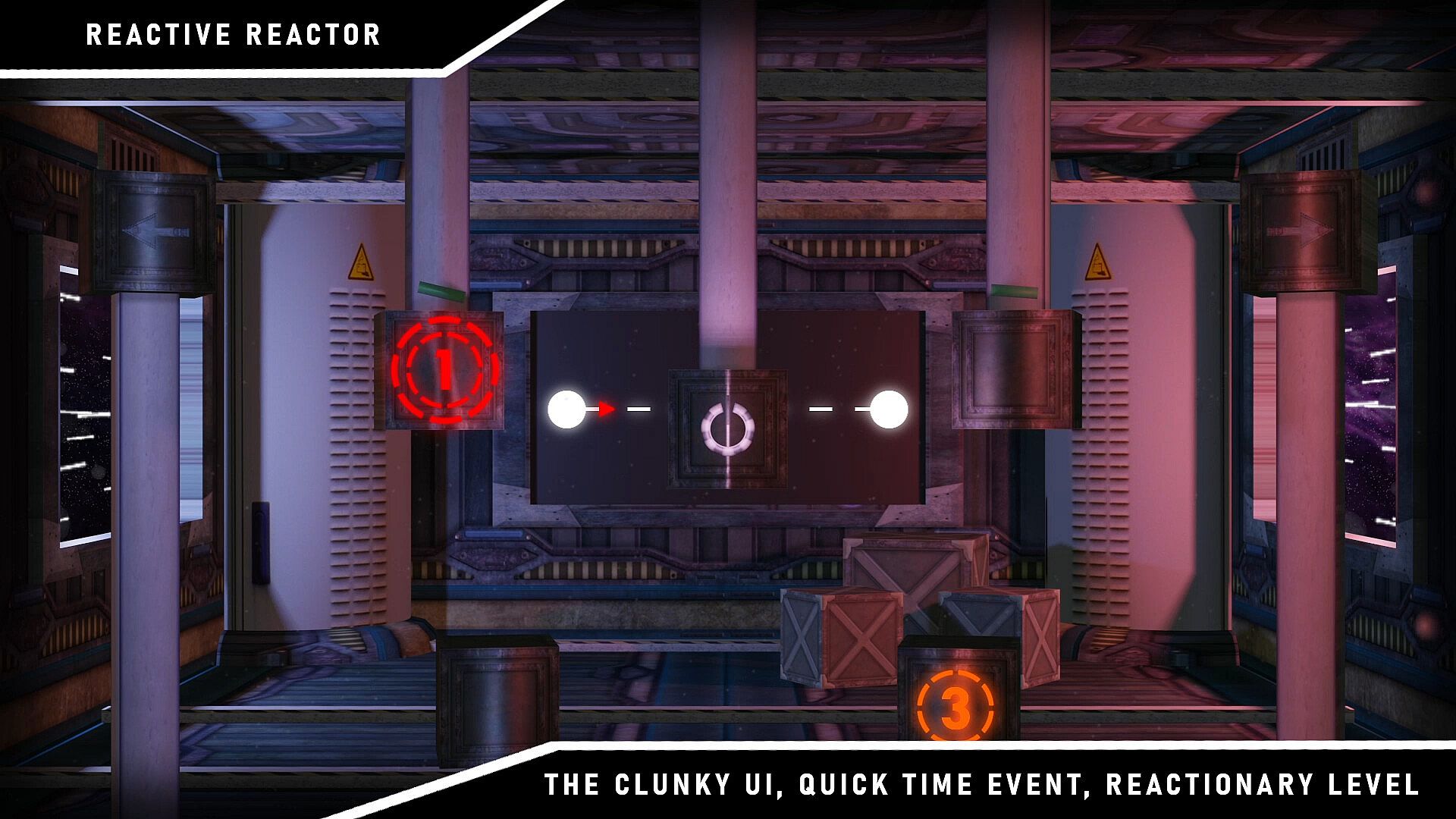 - Reactive Reactor - The clunky UI, quick time event, reactionary level.