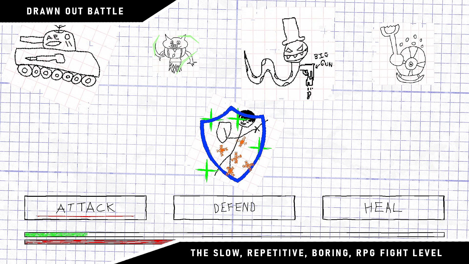 - Drawn Out Battle - The slow, repetitive, boring, RPG fight level.