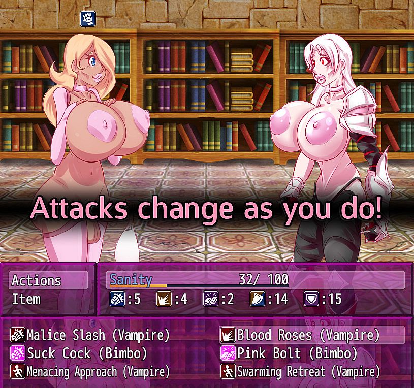 Victoria's Body is an erotic game of sexual transformation and humiliation. Fight enemies as they attempt to humiliate you by changing different body parts of yours to match the hyper-fetishizied versions of their own and disrupt your attacks. Don't think that you can avoid indulging in your fetishes either, as you'll need transformations like those cock-sucking bimbo lips to activate statues and solve puzzles in order to progress through the twisted castle!