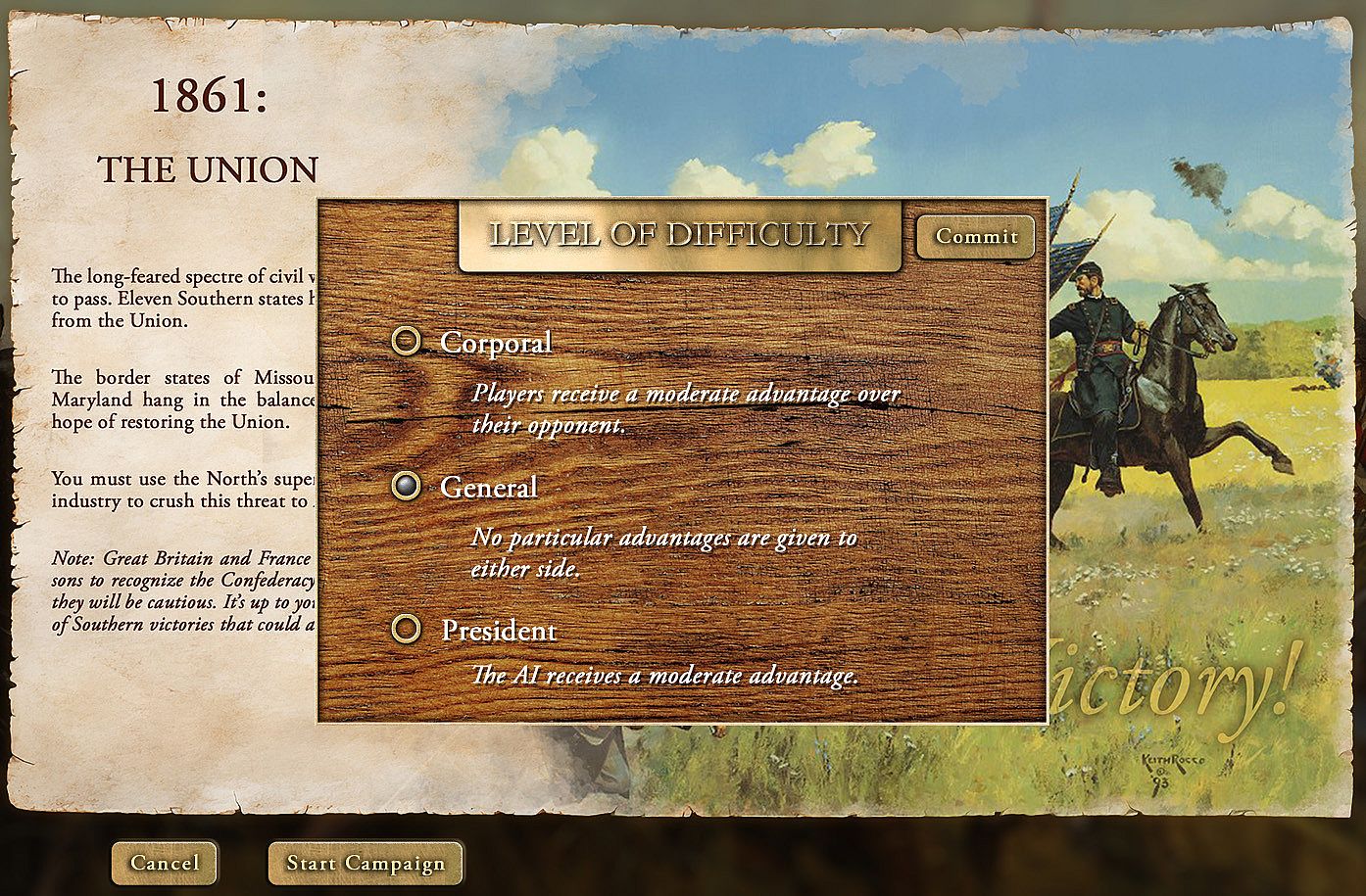 • 3). Play the Union against an expanded Confederacy with the states of Missouri, Kentucky, and Maryland having seceded and joined the Confederacy. This is an “alternate history” scenario, with the U.S. capital moved to New York City.