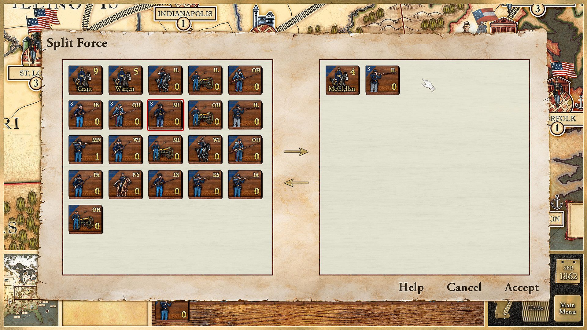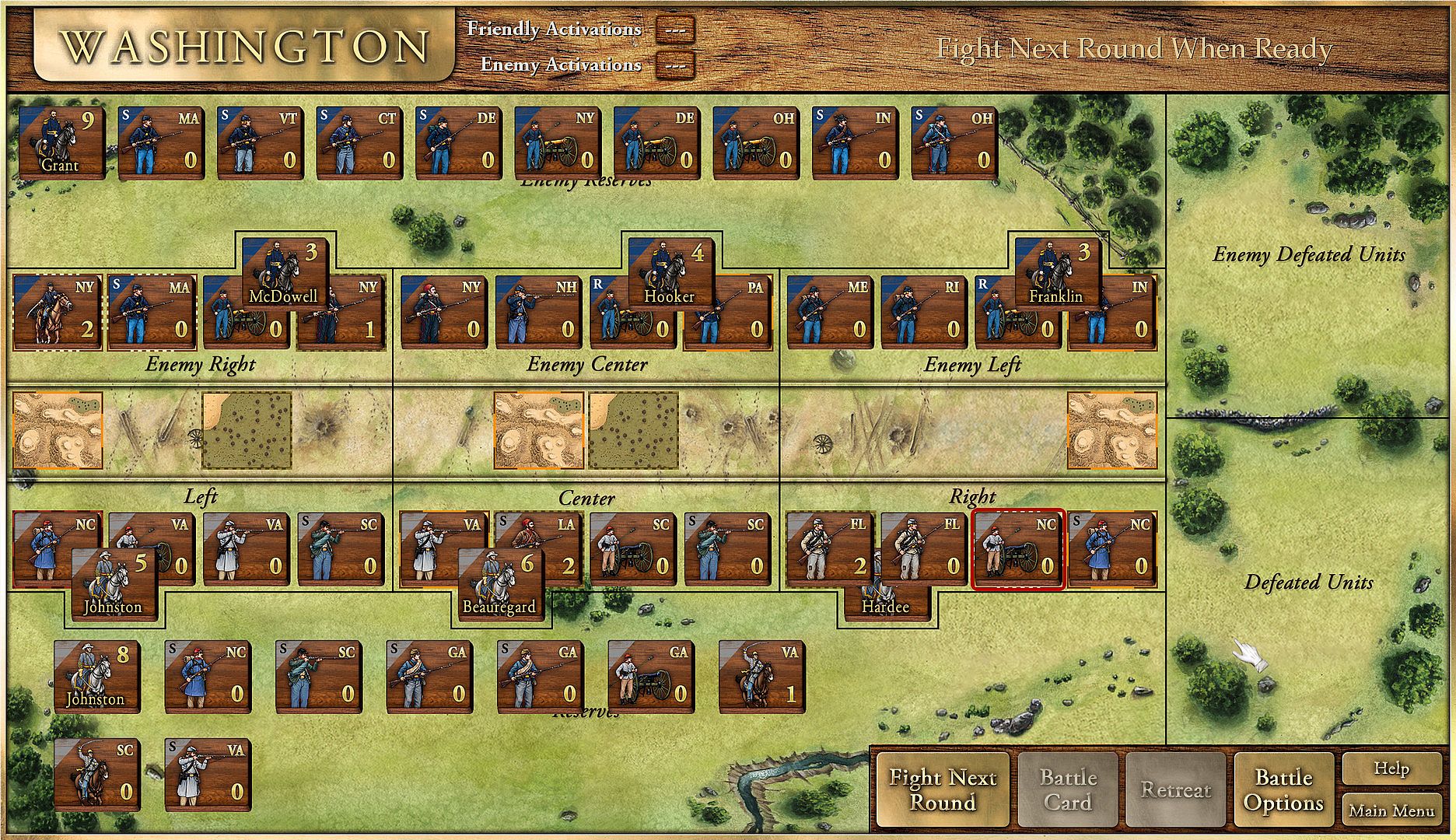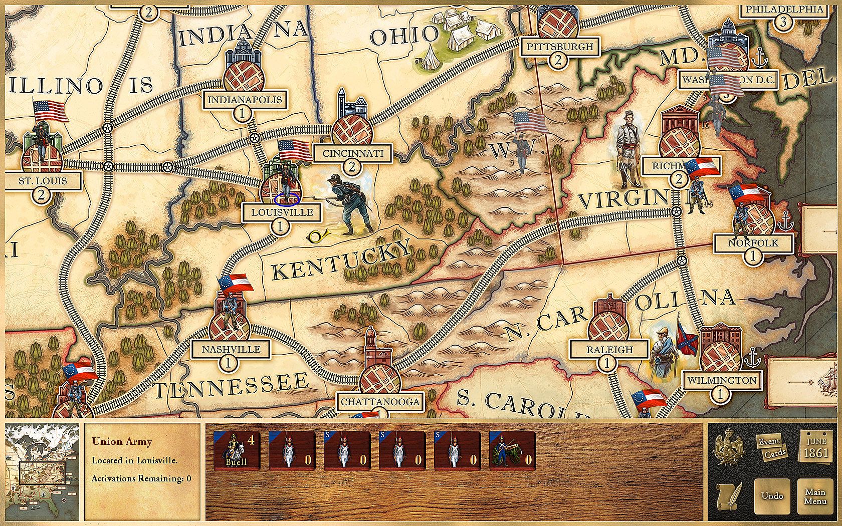• Each card implements special unit upgrades, advantages in battle, new recruits, historical events, or political events that can affect the struggle between North and South.