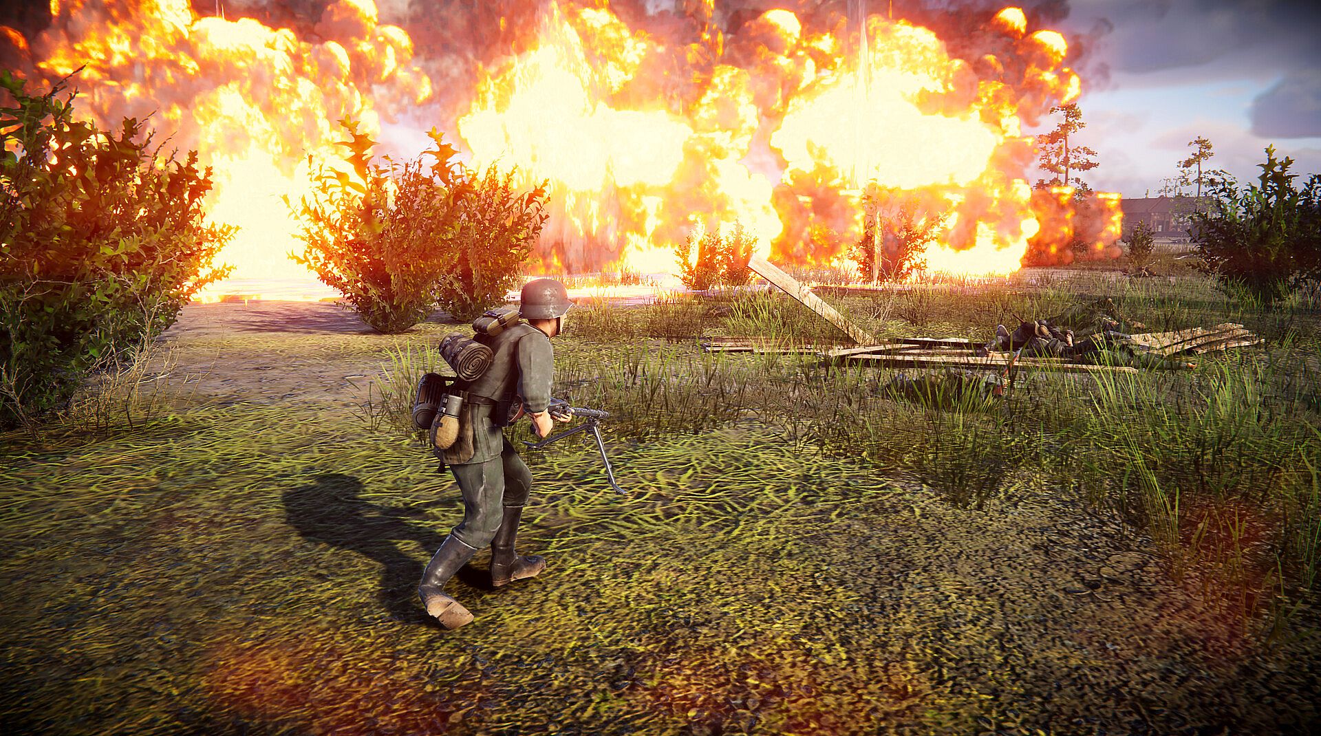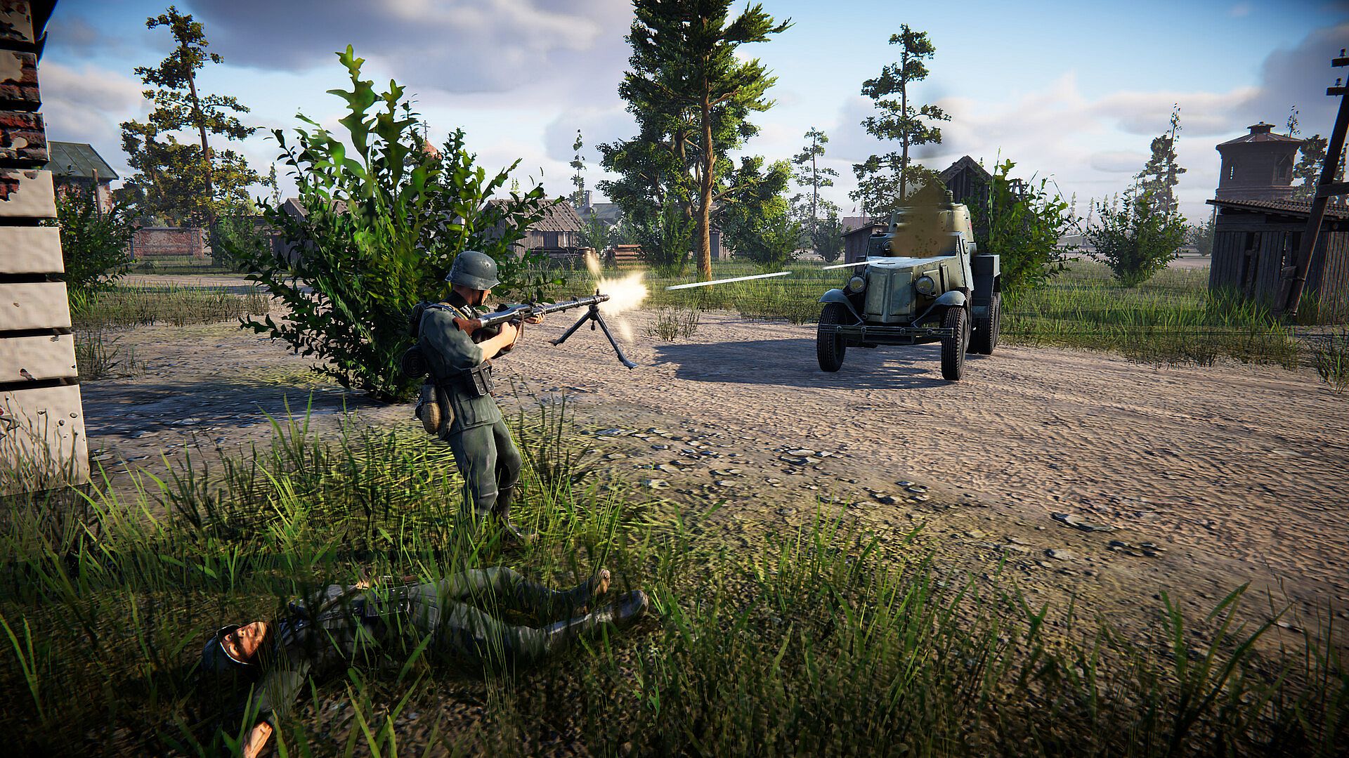 This mode gives you precise control over every unit's actions: pick up weapons on the battlefield, use grenades and mines, fight indoors using objects and environmental cover, and operate long-range and heavy weapons — from machine guns to mortars.