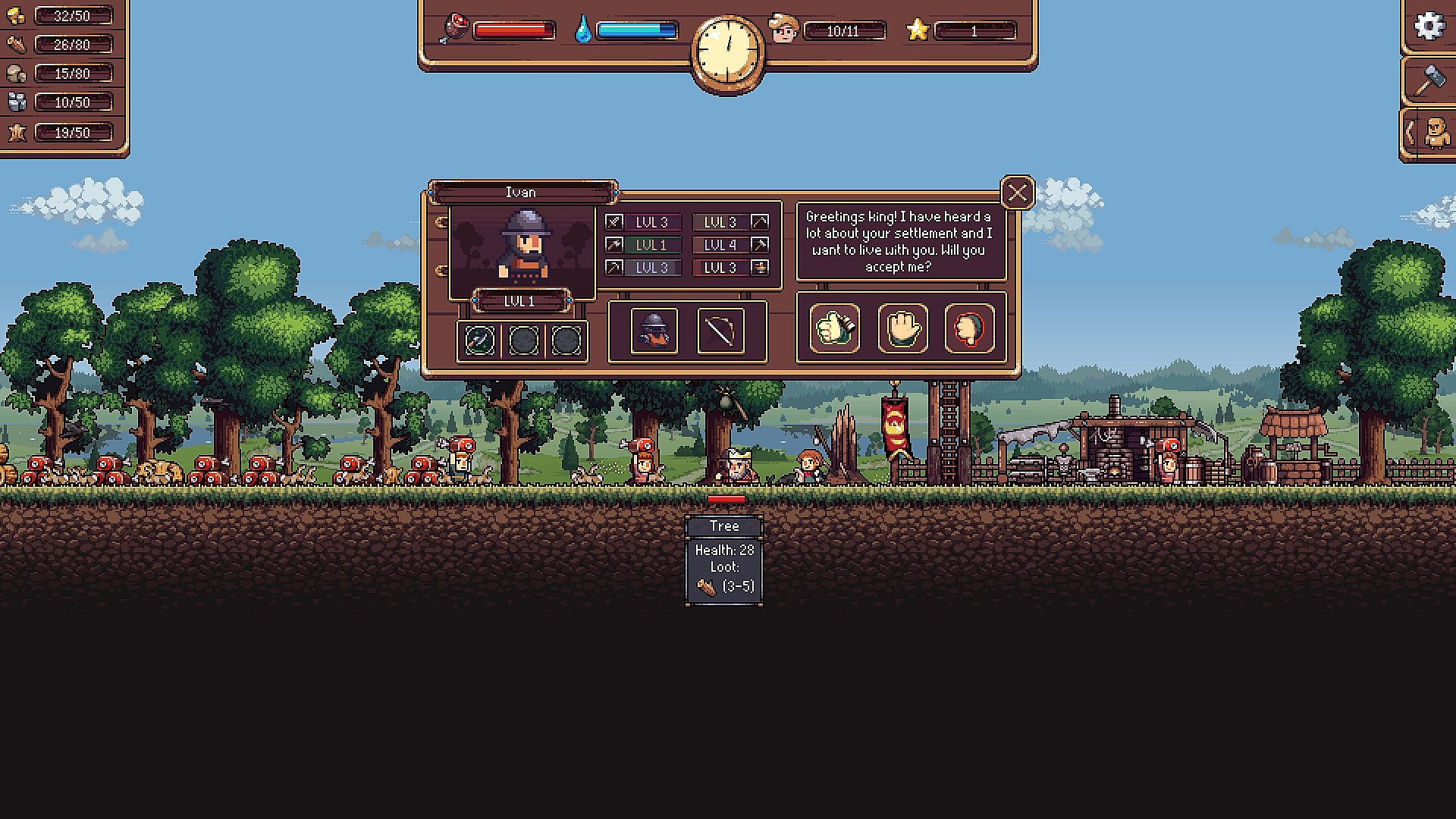 Villagedom is a 2D city-builder and resource management game. Take on the role of a disgraced king who, despite having once been venerable and powerful, suffered defeat in history’s latest war. Your kingdom has been lost. Your subjects have forsaken you. And now, it is time to build anew.