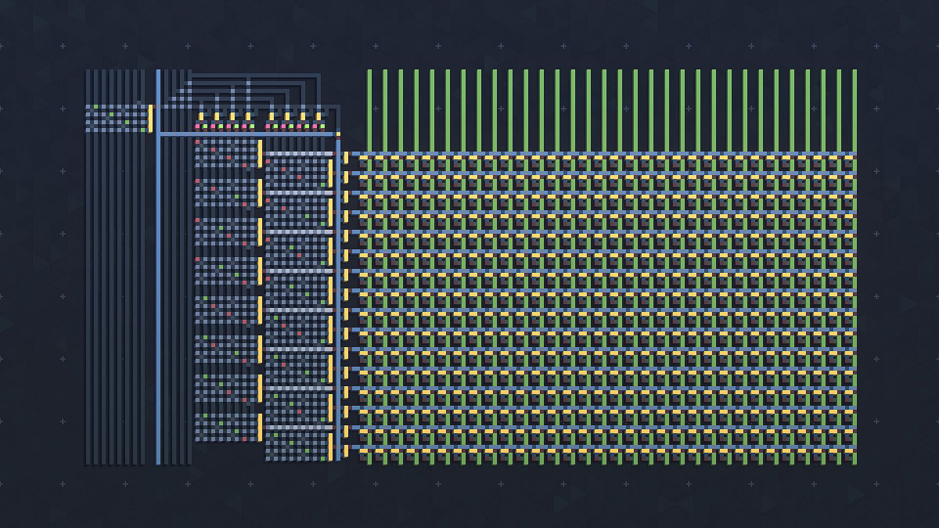 Build and experiment with logic circuits in this sandbox simulation. Draw color-coded logic gates and traces using intuitive tools, including arrays for multiple traces at once. Switch between editing mode to craft circuits and assembly programs, and simulation mode to run high-performance tick-based logic at millions of updates per second. Components and traces handle multiple inputs and outputs, while decoration layers let you add custom buttons and labels that shift with circuit states. An assembly editor turns your instructions into virtual memory for circuits to access. Players with basic logic gate knowledge thrive in this open-ended environment, setting their own build goals without tutorials or levels.