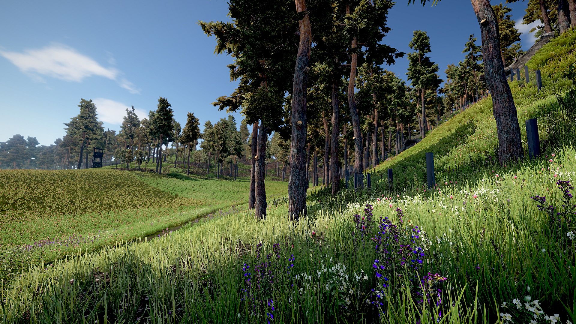 - All objects in the terrain (trees, bushes, rocks, paths etc.) are generated based on the input orienteering map.