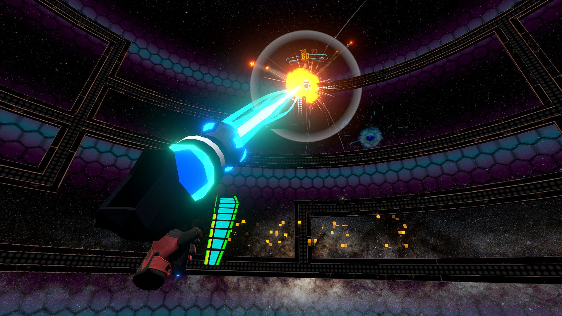 Virtual Ricochet is built from the ground up as a fusion of the best of VR shooters and tennis-style mechanics in a retro-futuristic synthwave arena - IN SPACE!