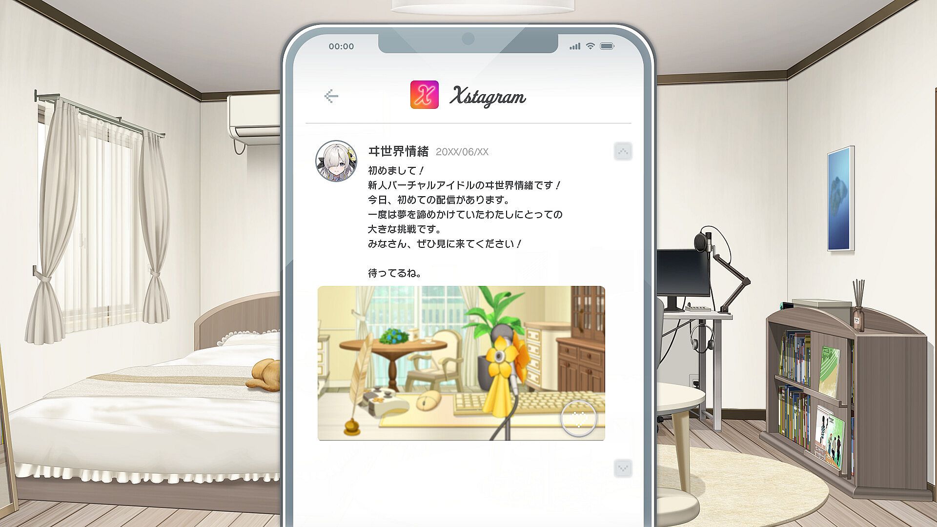 This is a fully voiced adventure game featuring a story-driven experience combined with a training system that lets you guide Hoshiumi on her path to becoming a top virtual idol.