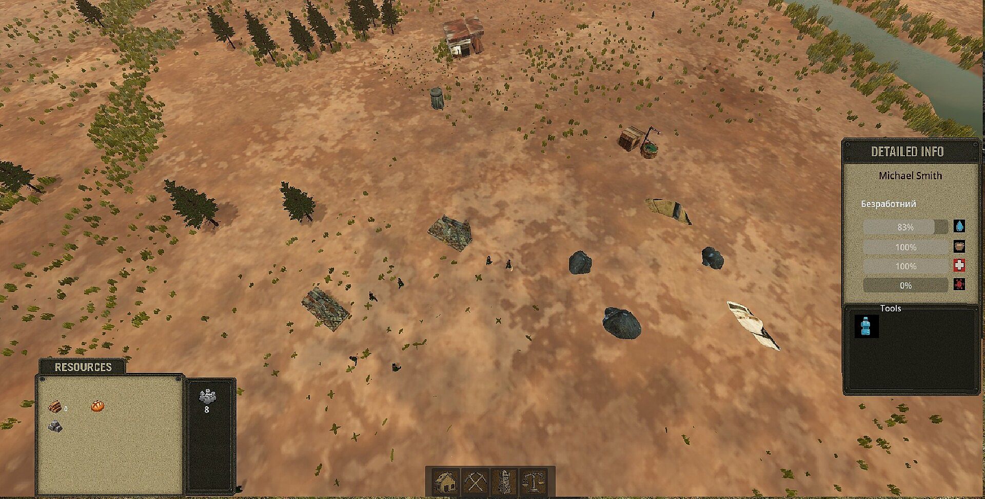 You lead one of these groups. Your task is to build a settlement from the ashes, gather resources, and provide your colonists with food, water, shelter, and safety. New survivors may join you — some will be helpful, others may bring problems.