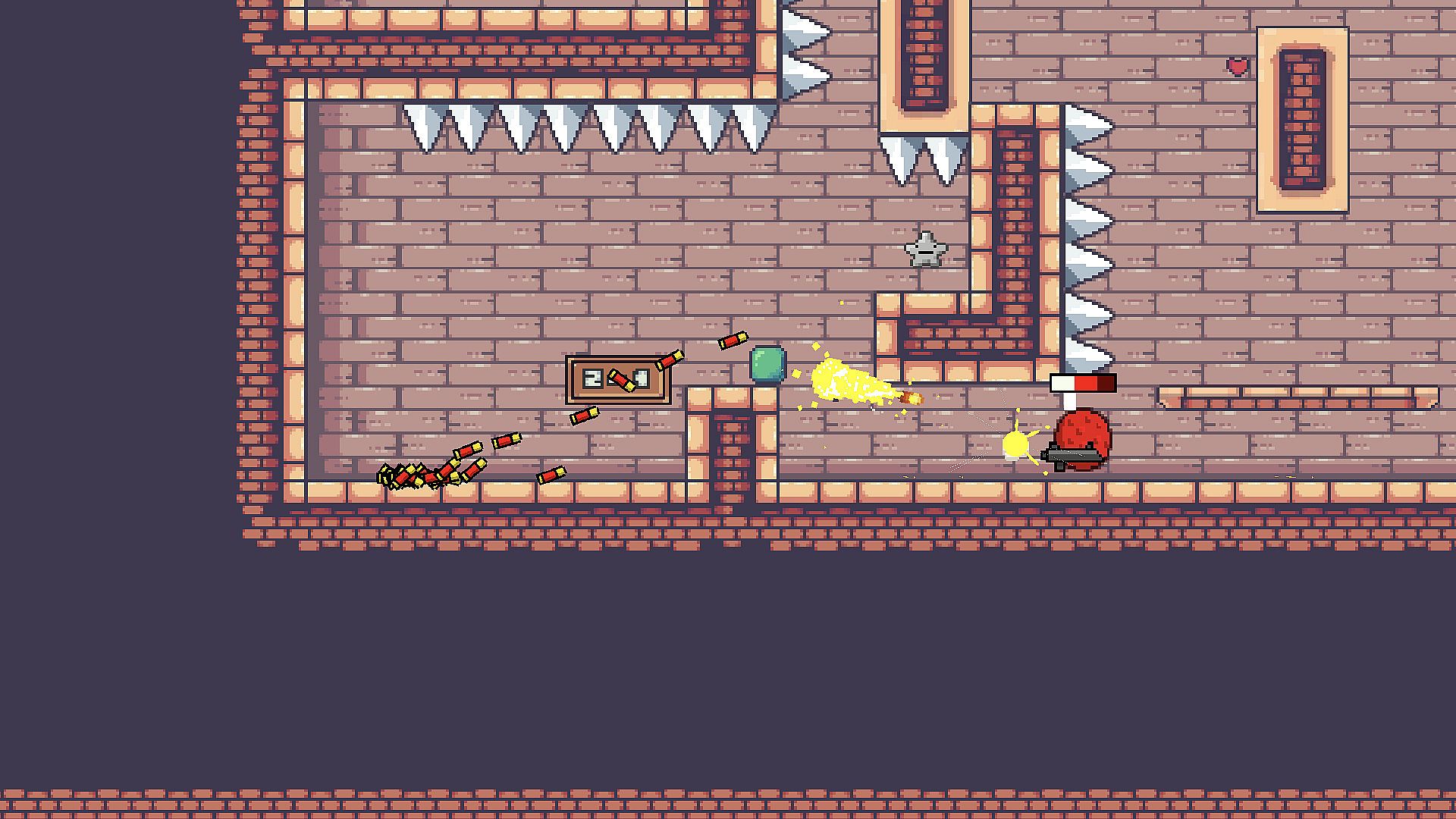 Pick up a heart to make a copy of yourself or two. The other you will do everything you do at different position. Use them to shoot more or turn on a switch in a distance.