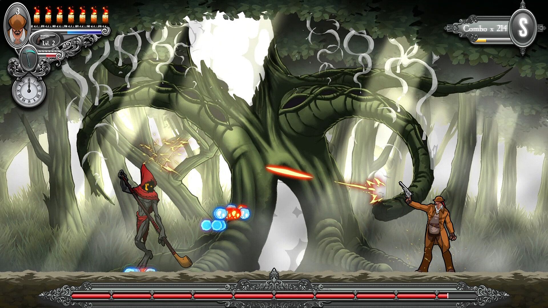 • Hand-Drawn Graphics: Dive into a richly detailed world with meticulously crafted 2D hand-drawn visuals that bring every setting and creature to life, from eerie ossuaries to lush but sinister forests.
