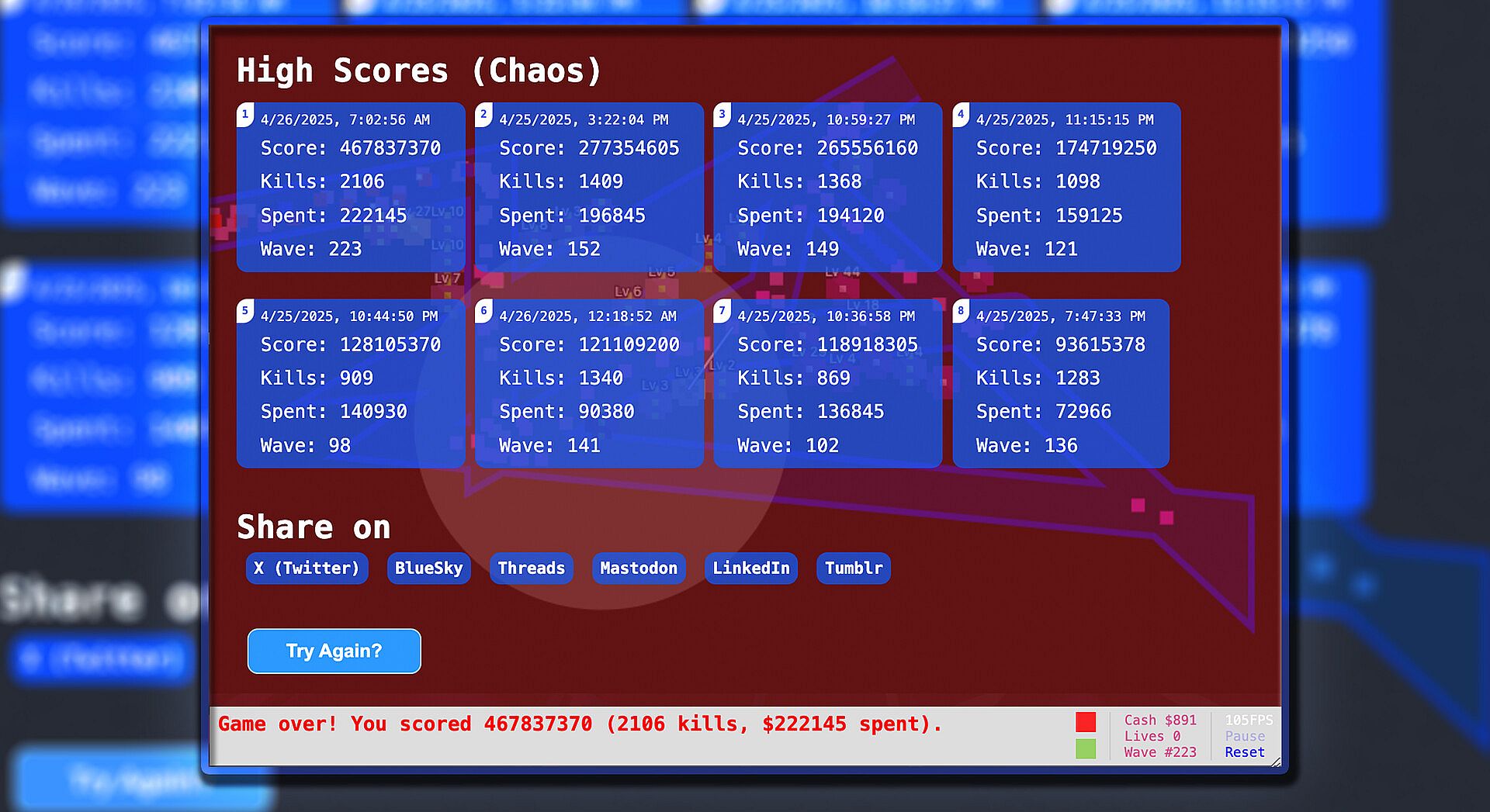 As humanity's final commander, it is your mission to construct and upgrade evolving turrets, built using adapted enemy technology, in an effort to delay the inevitable extinction of mankind for even a little longer.