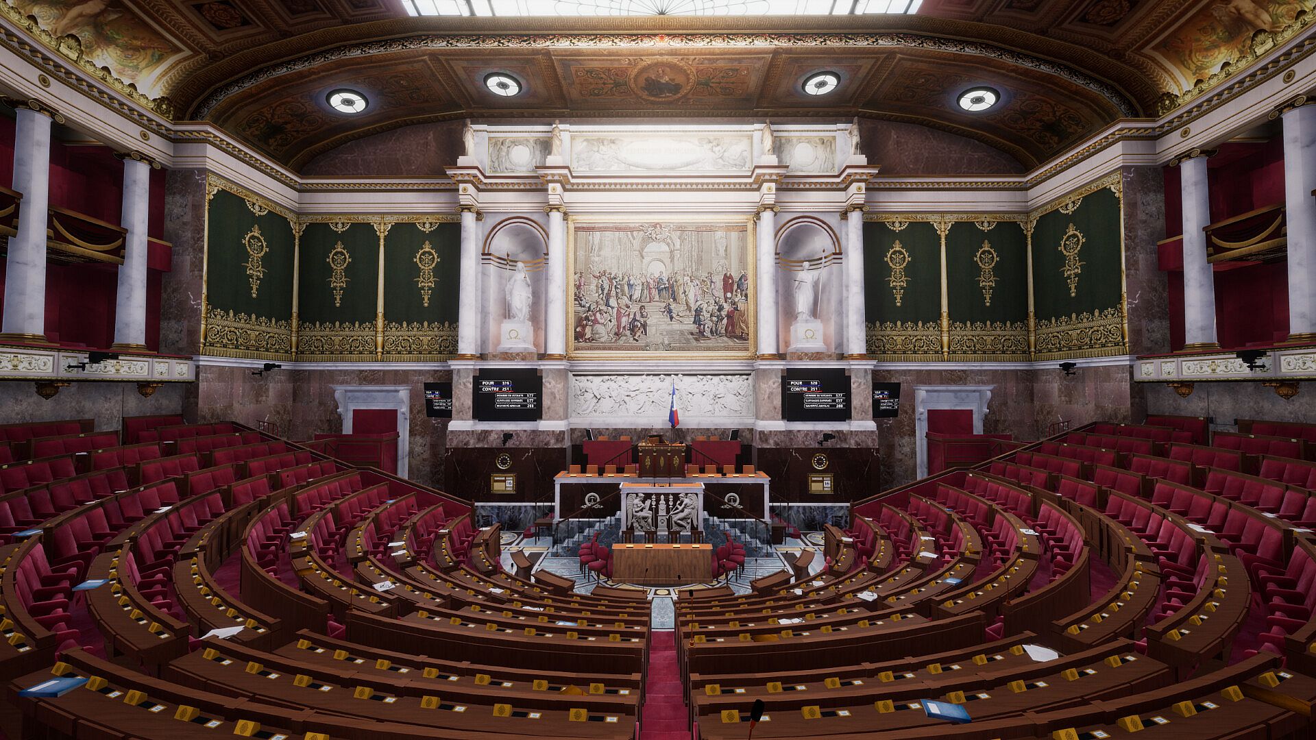 Freely explore the National Assembly and the HĂ´tel de Lassay using your computer, Steam Deck, or virtual reality headset, in a fully immersive experience.