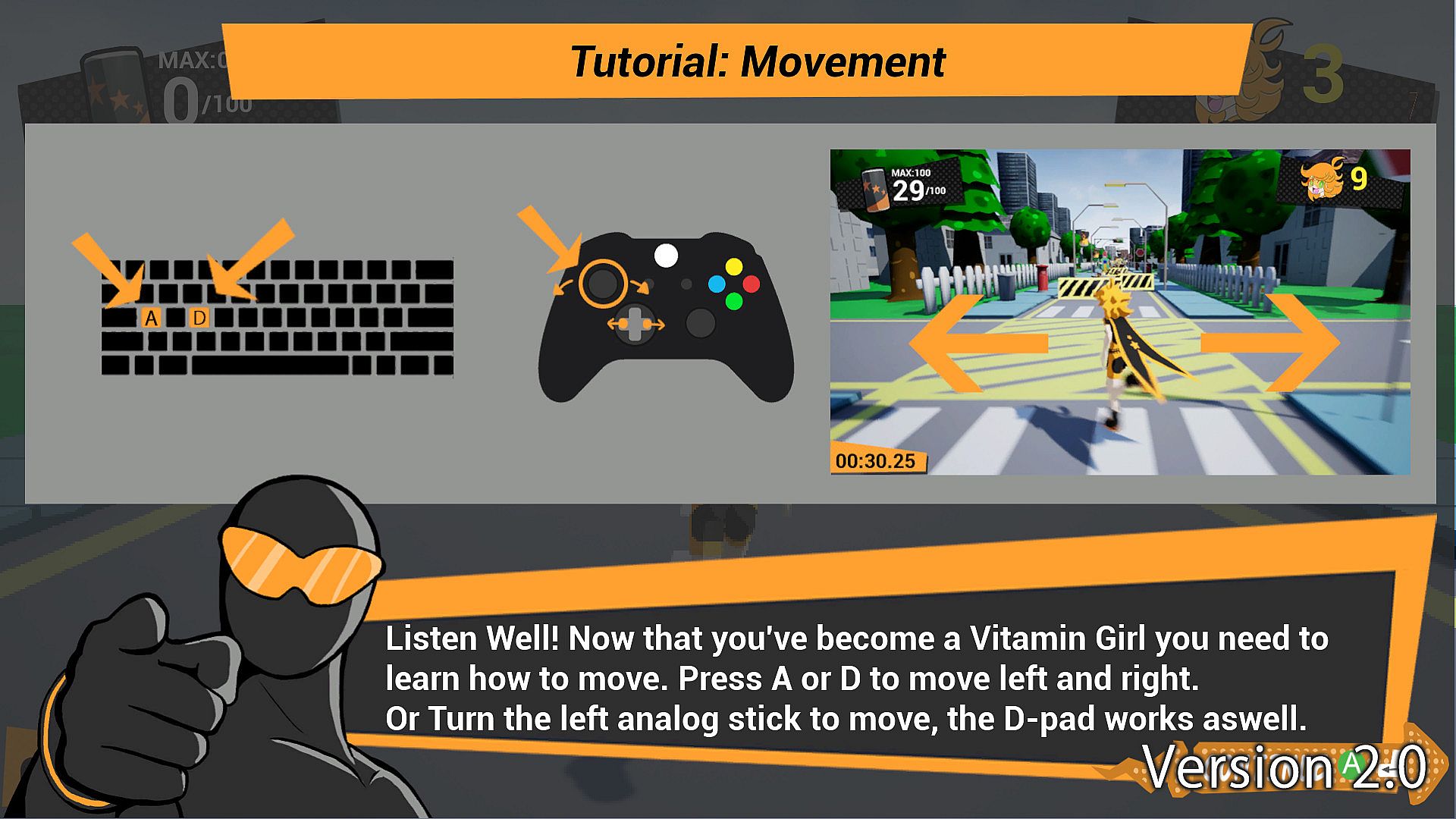 -Vitamin C Mode: Run, jump, slide down! Run to the goal!