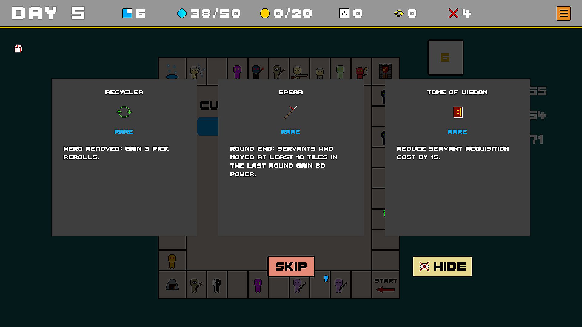 • Reroll your servants' dice to land them on tiles occupied by heroes.