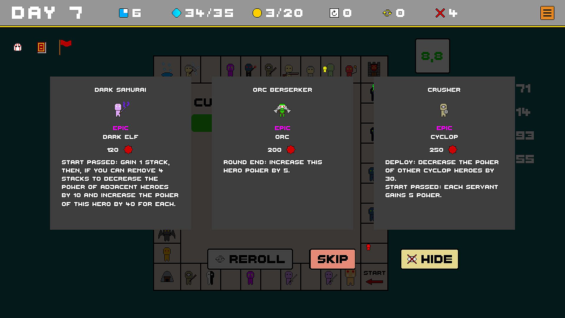 • Play from a roster of 70 heroes, placing them on the board to boost your army.