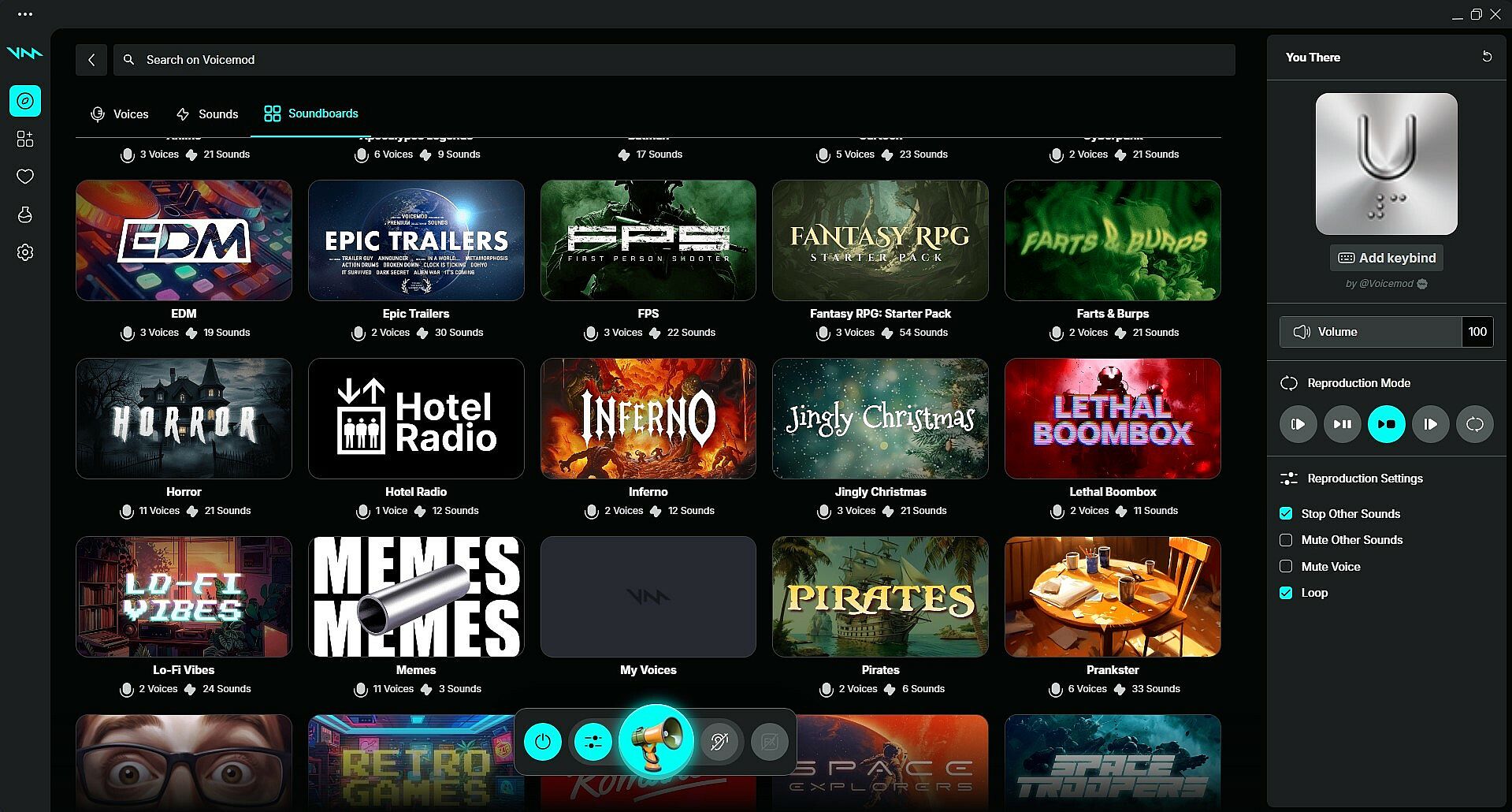 Create a soundtrack for your life with Voicemod's soundboard. Queue up your favorite effects, switch between them on the fly, and take charge of your auditory environment. Whether you're role-playing, podcasting, or just chatting, your soundboard ensures you're always on cue.